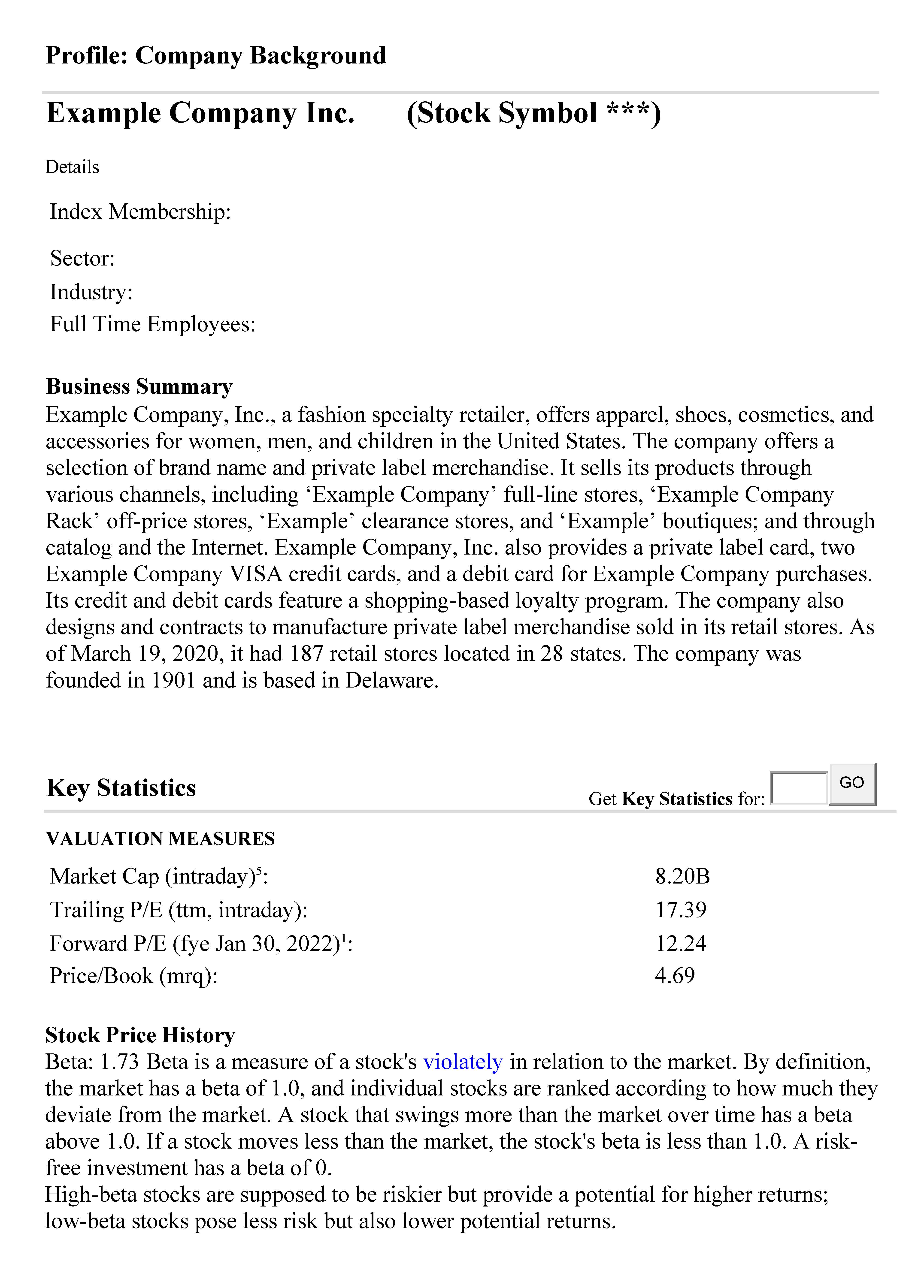 Profile: Company Background Example Company Inc. (Stock Symbol ***...