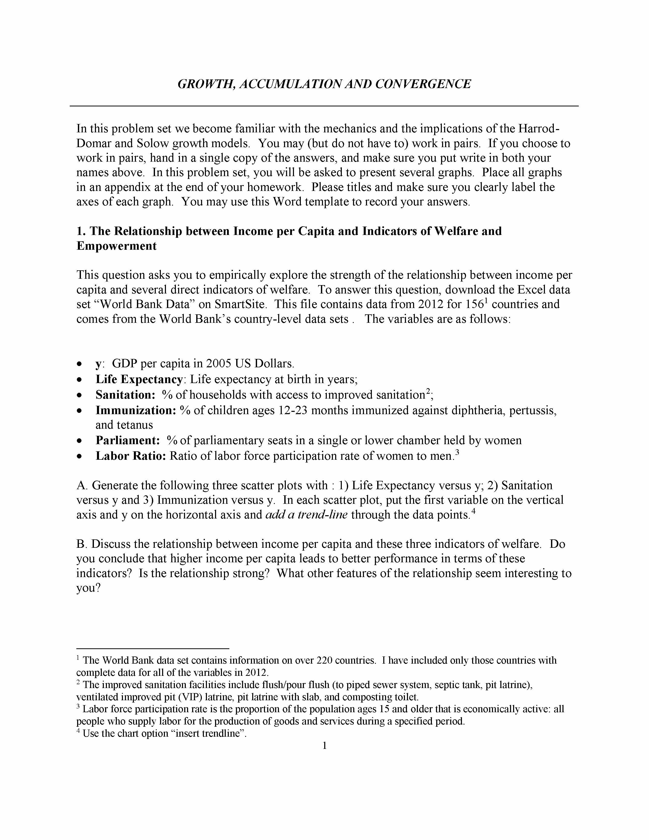 1 GROWTH, ACCUMULATION AND CONVERGENCE In this problem set we bec...