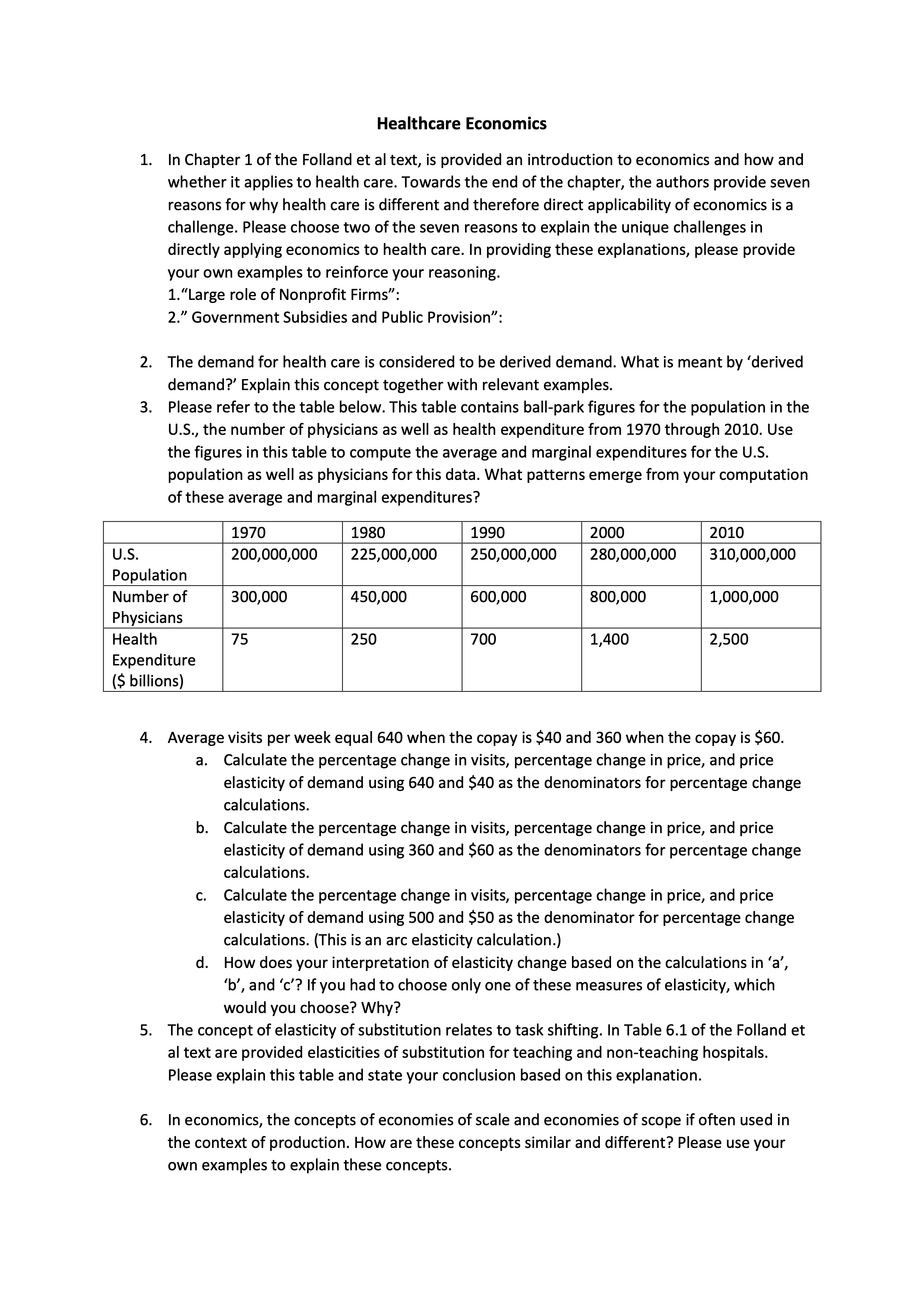 Healthcare Economics 1. In Chapter 1 of the Folland et al text, is...