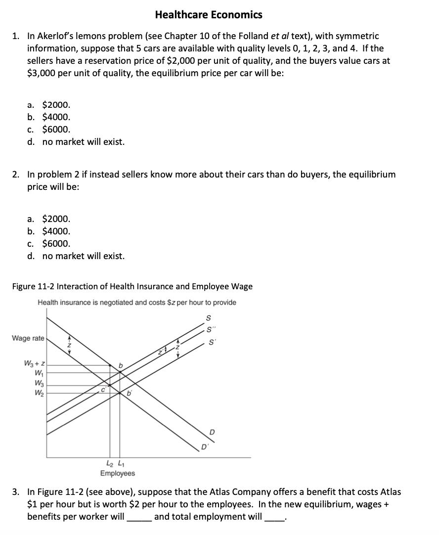Healthcare Economics 1. In Akerlof's lemons problem (see Chapter 1...