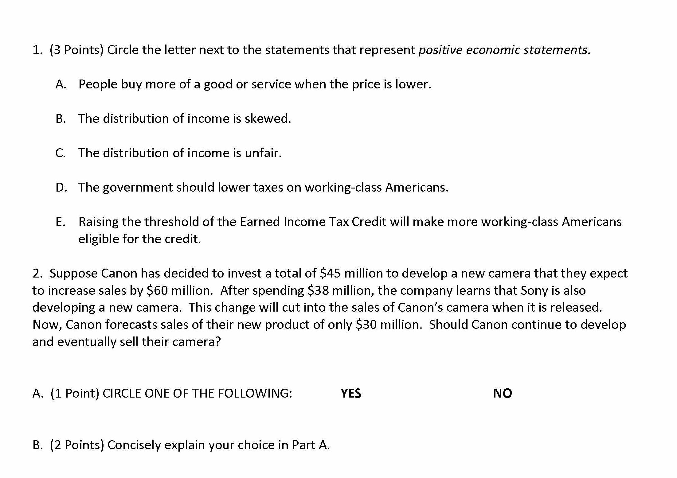 1. (3 Points) Circle the letter next to the statements that repre...