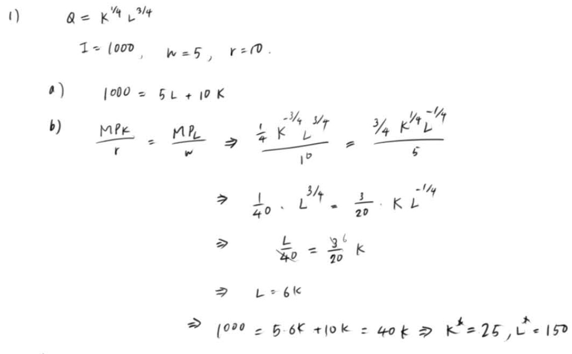 1) Let a production function exist such that Q = (K•251;75). ...