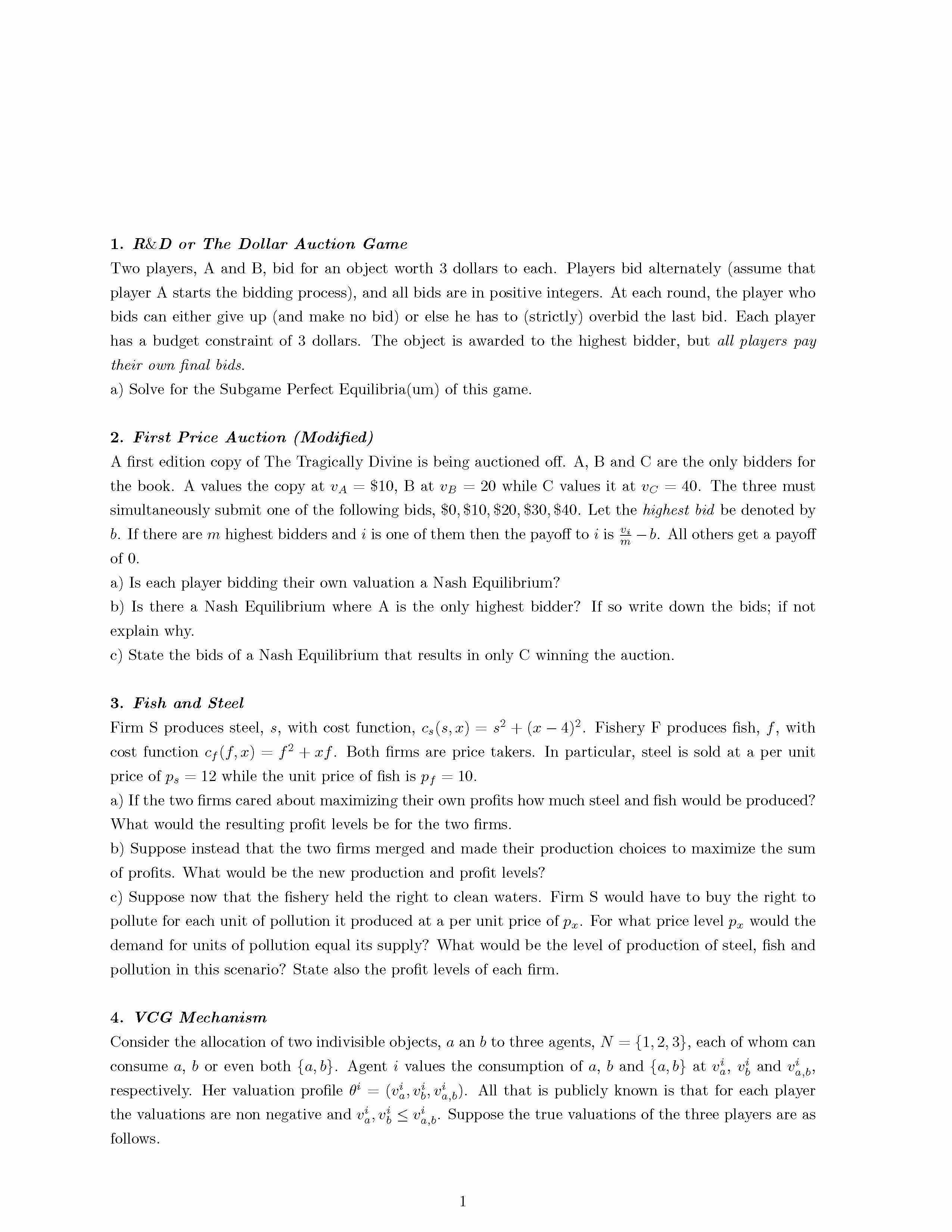 1. R&D or The Dollar Auction Game Two players, A and B, bid fo...
