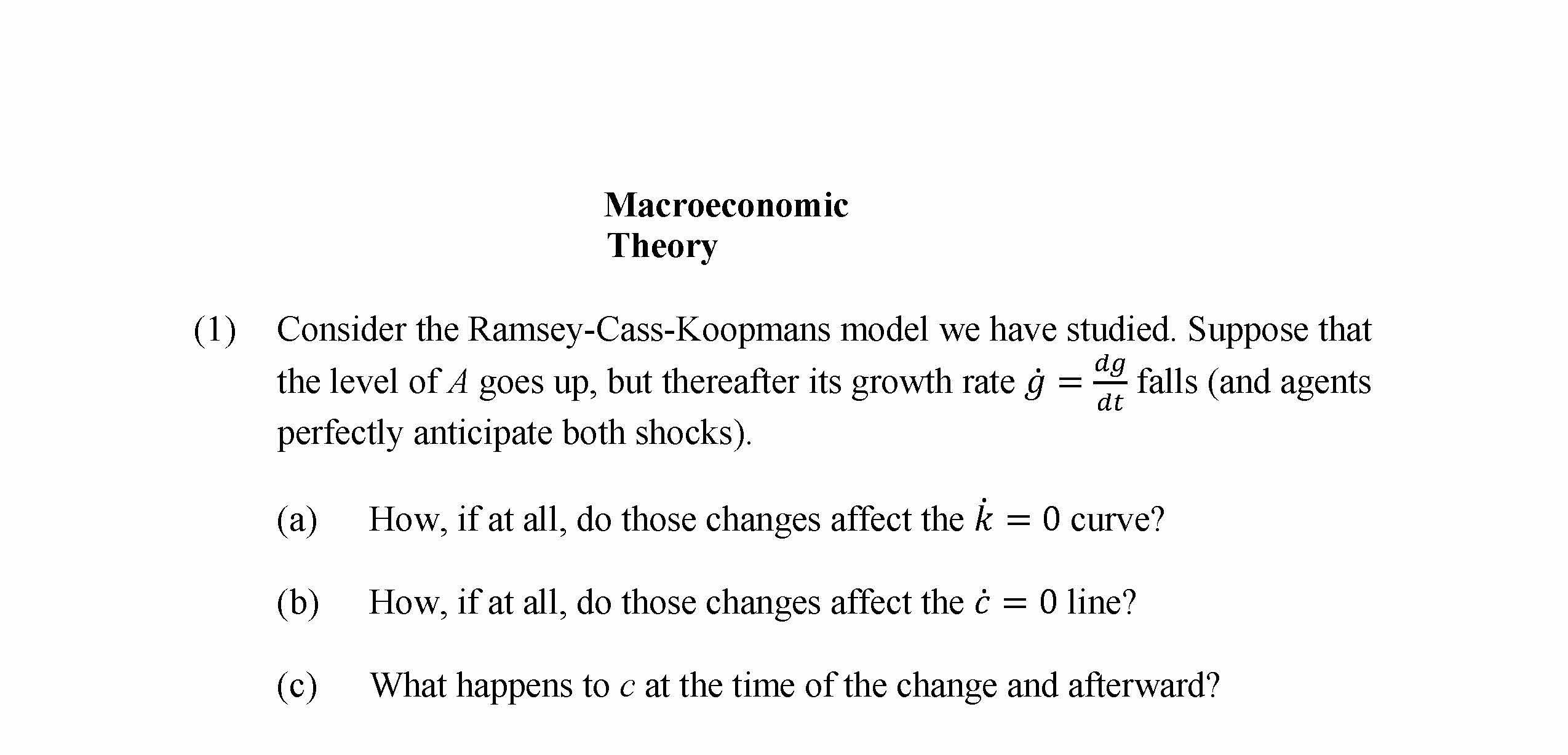 Macroeconomic Theory (1) Consider the Ramsey-Cass-Koopmans model...