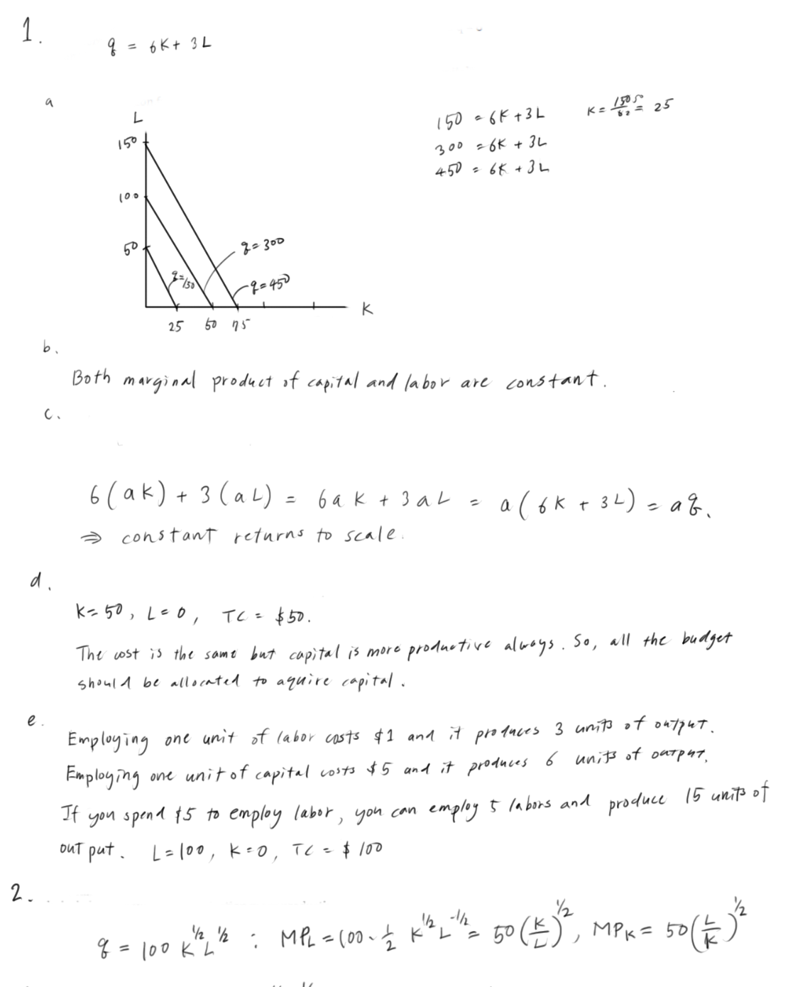 1. Graphing isoquants The output of mugs is given by the productio...