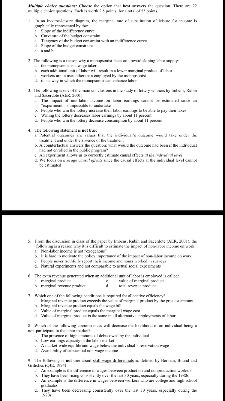 Multiple choice questions: Choose the option that best answers the ...