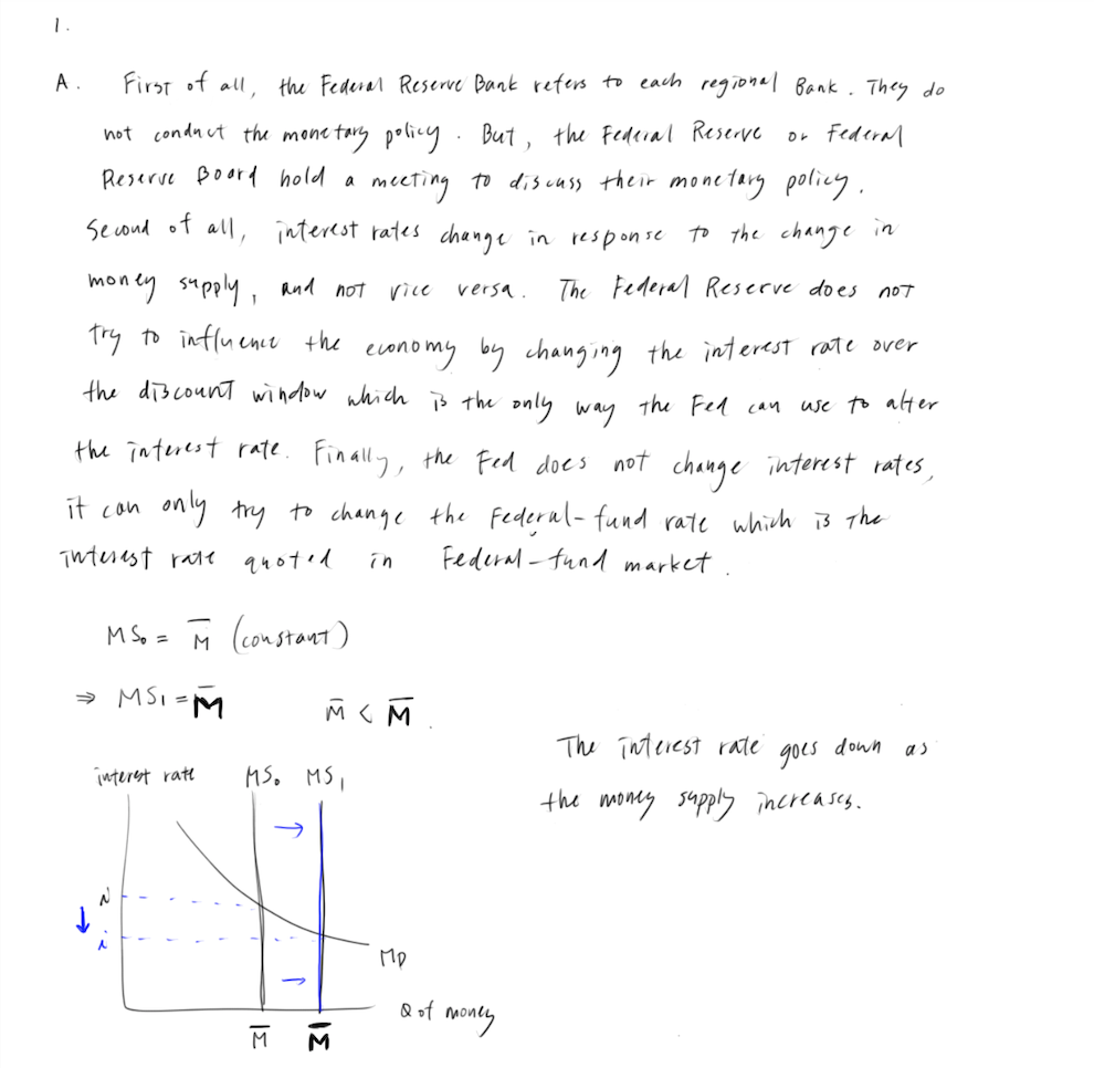 1. A. What happens to the money supply if the Federal Reserve Bank...