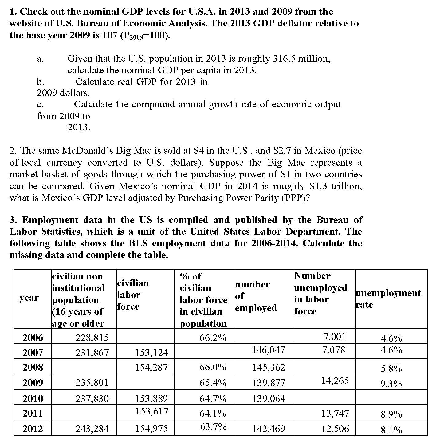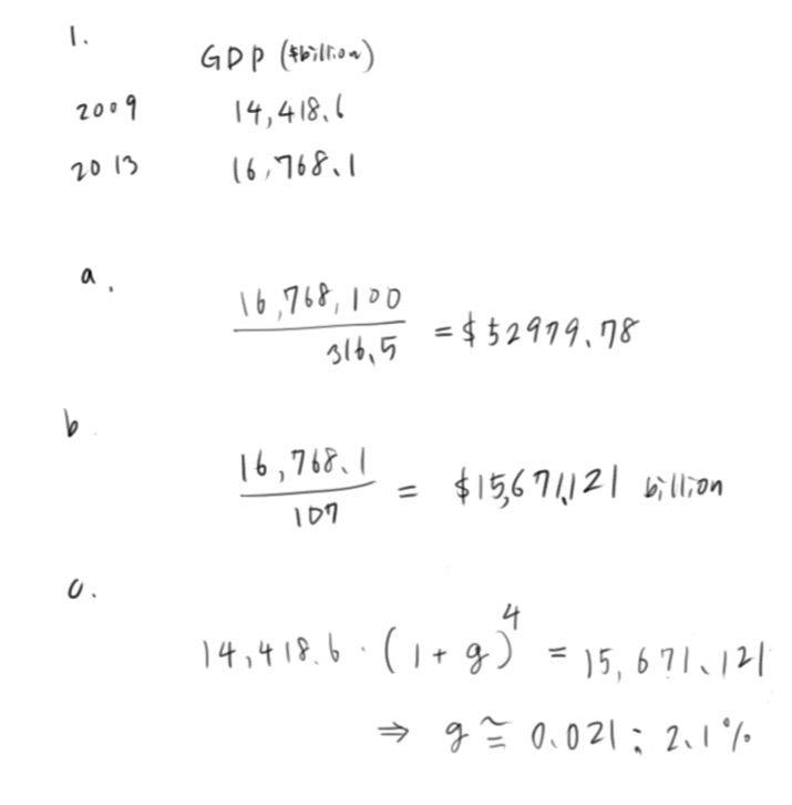 1. Check out the nominal GDP levels for U.S.A. in 2013 and 2009 fro...