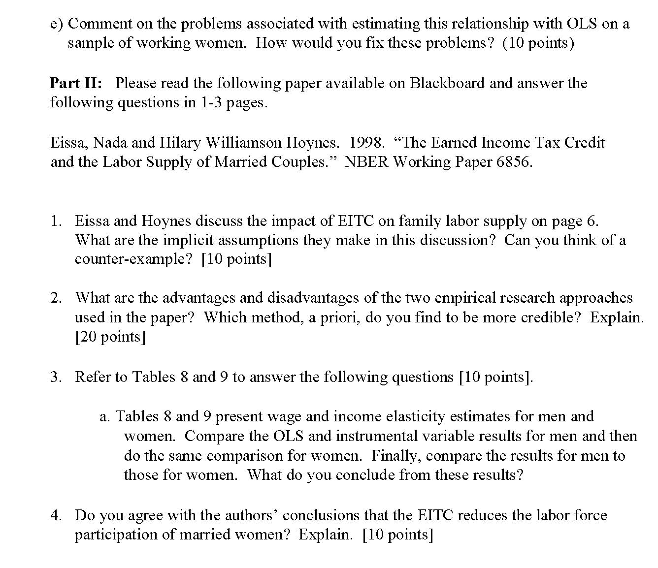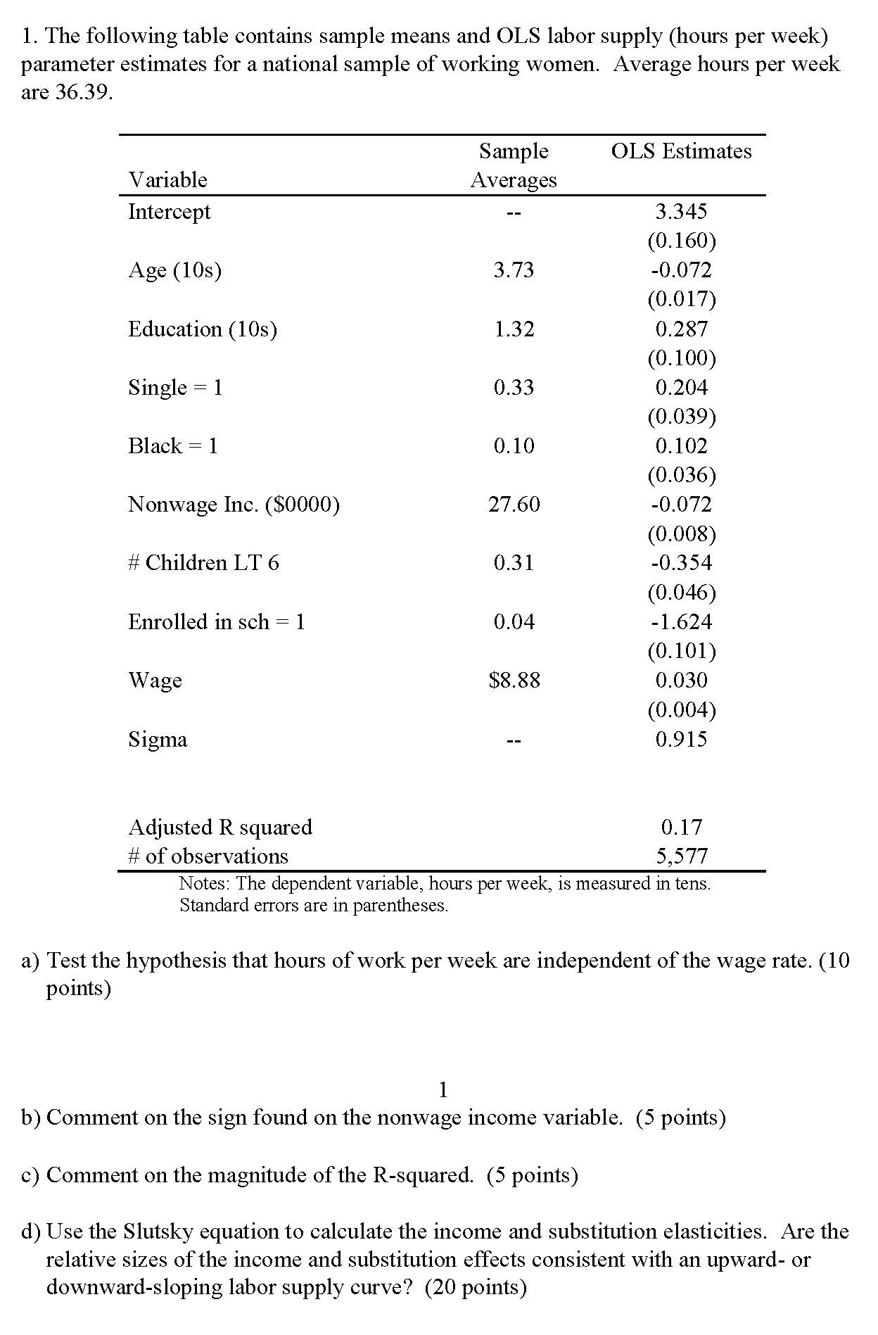 1. The following table contains sample means and OLS labor supply (...