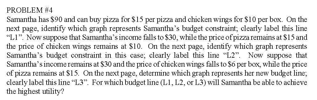 PROBLEM #4 Samantha has $90 and can buy pizza for $15 per pizza an...