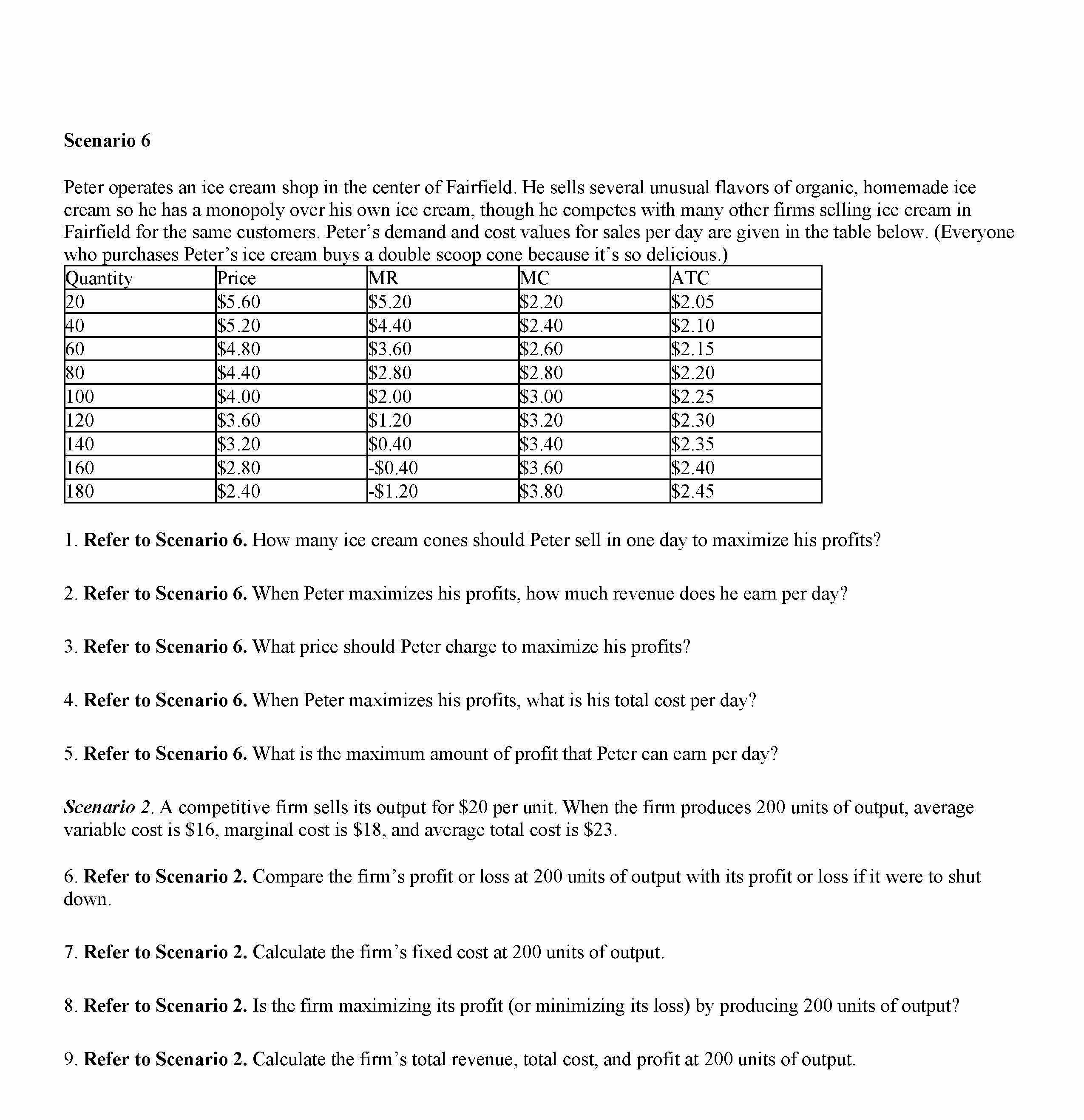 Scenario 6 Peter operates an ice cream shop in the center of Fai...
