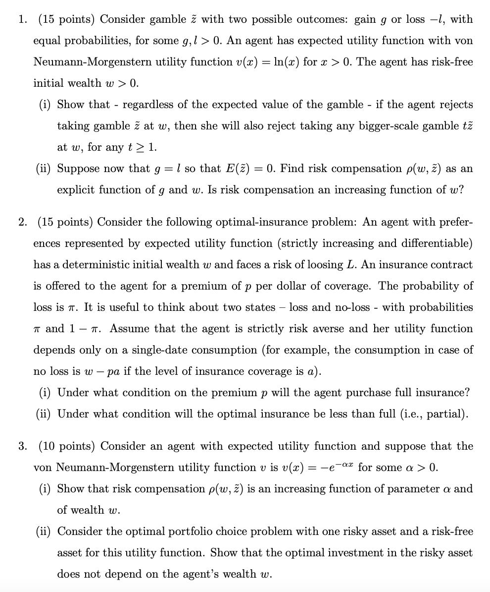 1. (15 points) Consider gamble with two possible outcomes: gain g o...