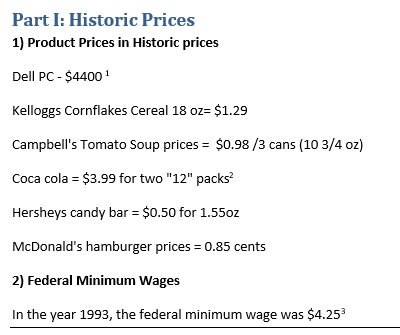 PART I HISTORIC PRICES 1. Find the prices for five products in t...