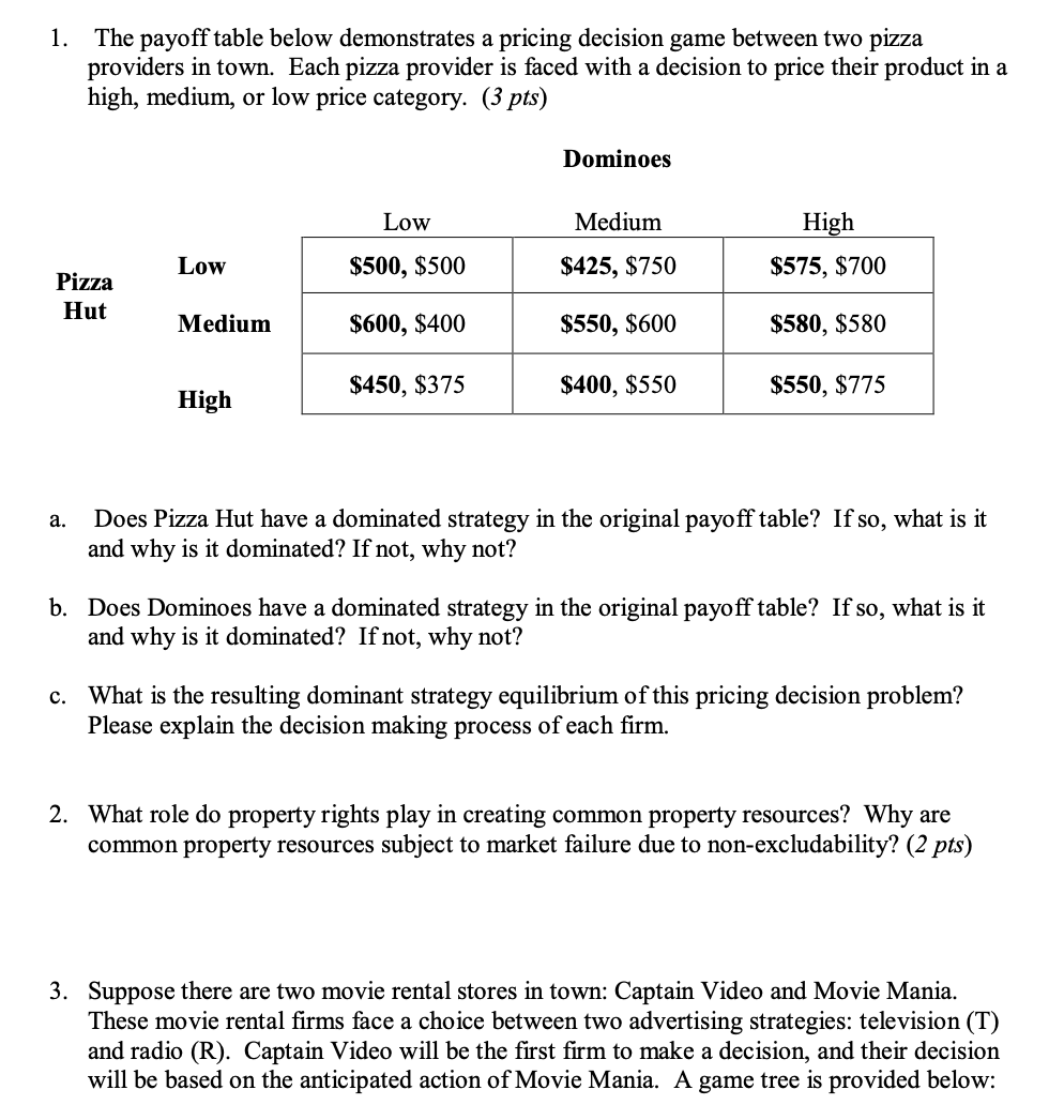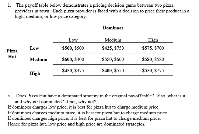 1. The payoff table below demonstrates pricing decision game betwe...