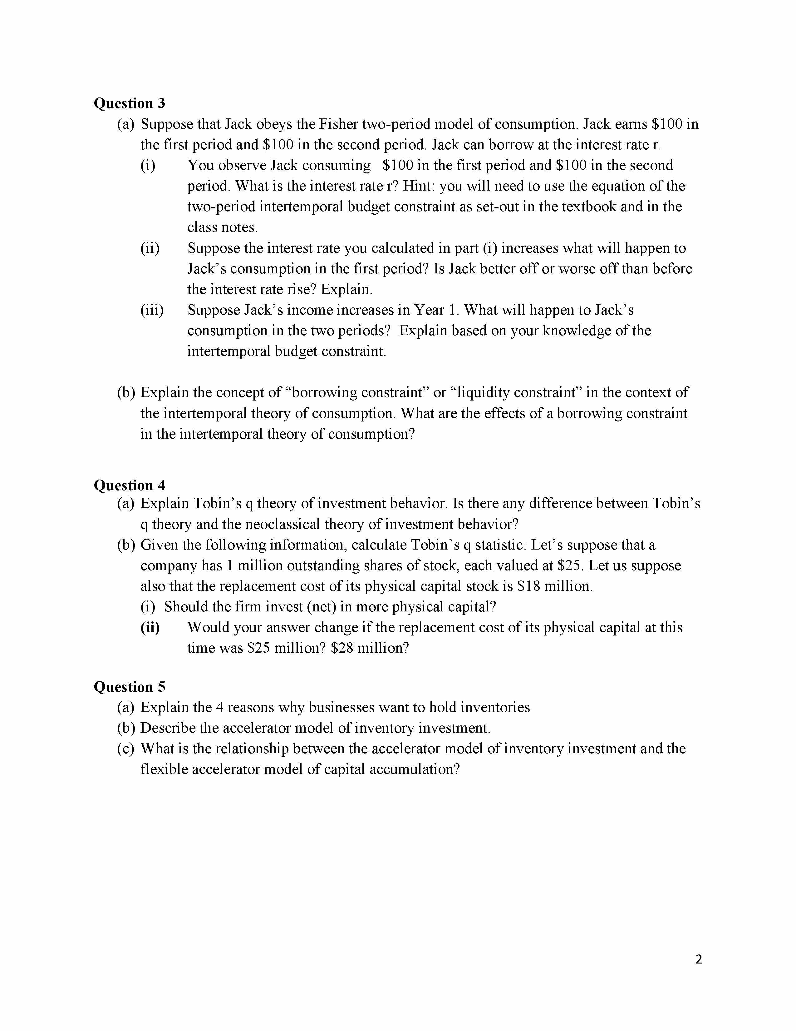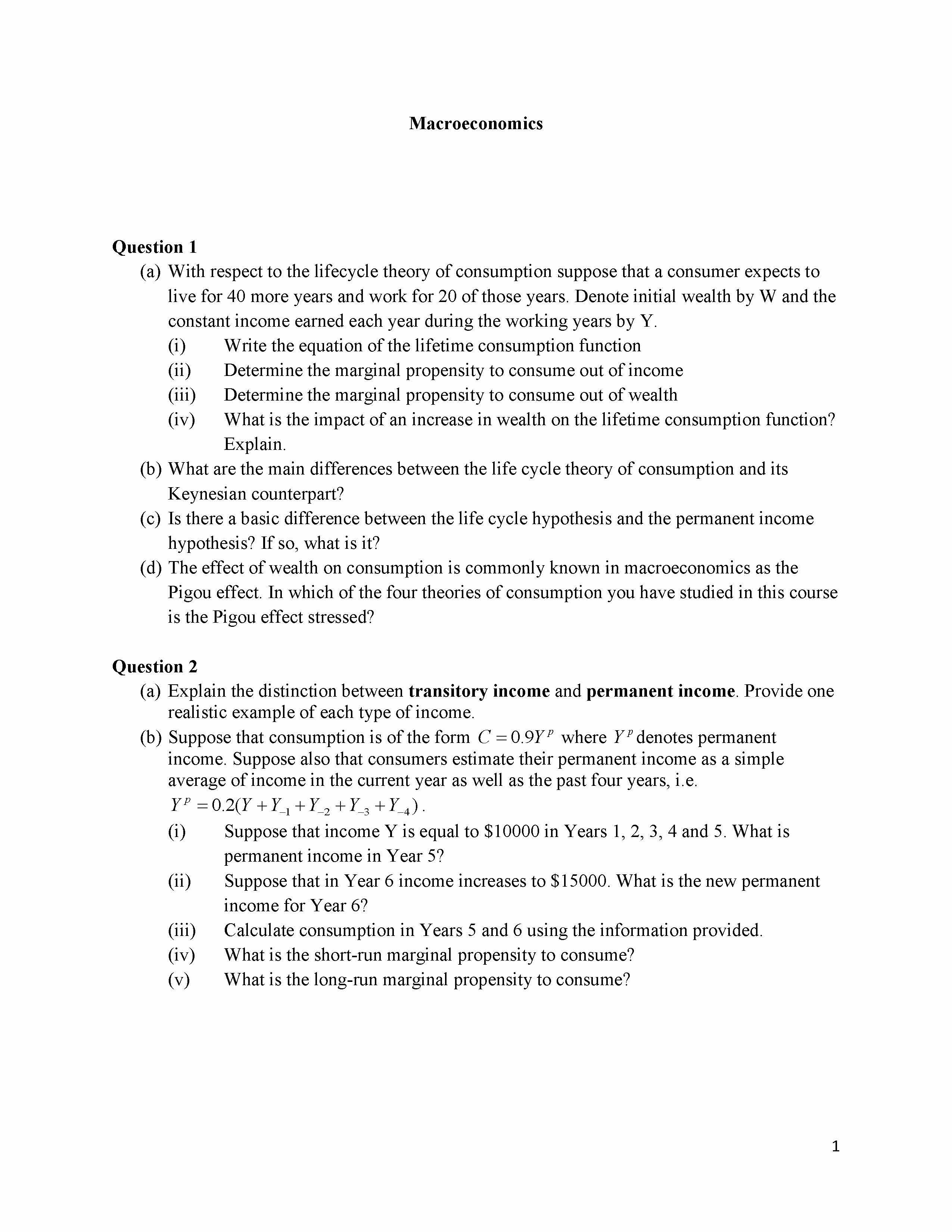 Question 1 Macroeconomics (a) With respect to the lifecycle theor...