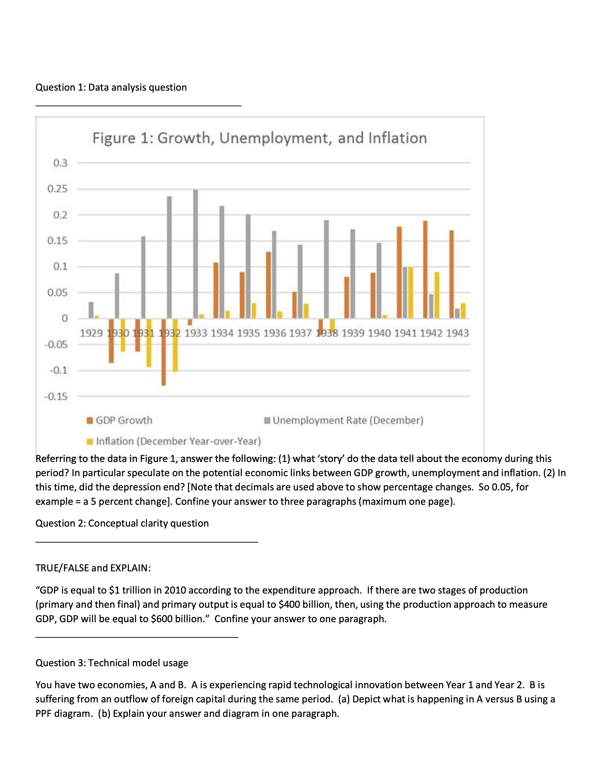 Question 1: Data analysis question Figure 1: Growth, Unemployment,...
