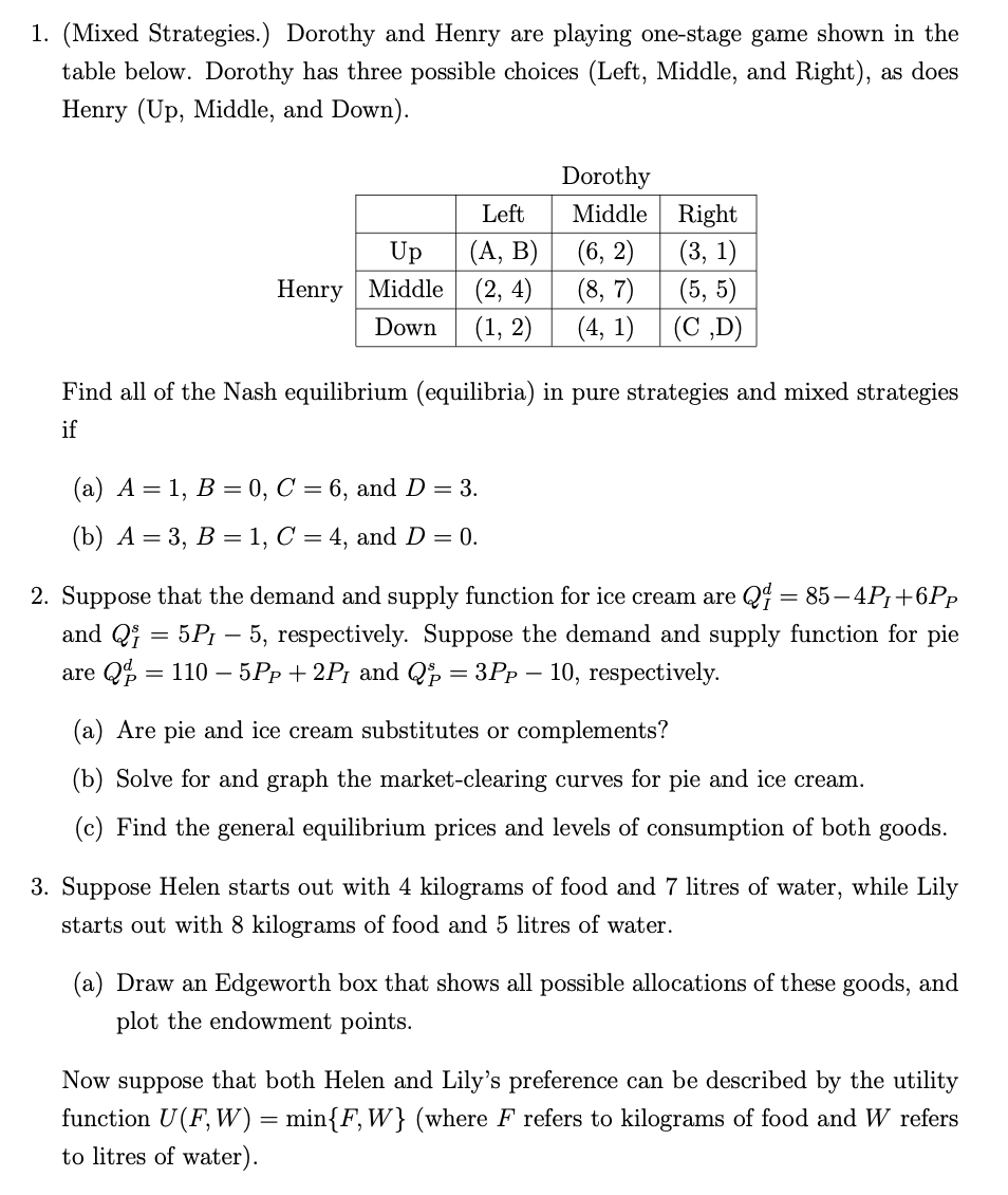 1. (Mixed Strategies.) Dorothy and Henry are playing one-stage game...