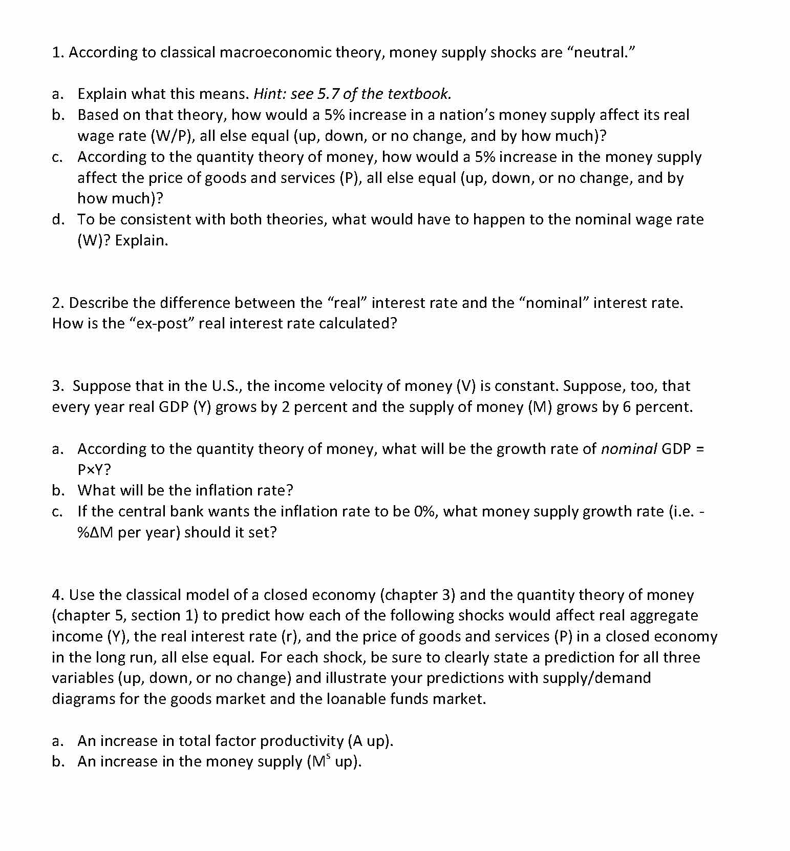 1. According to classical macroeconomic theory, money supply shocks...