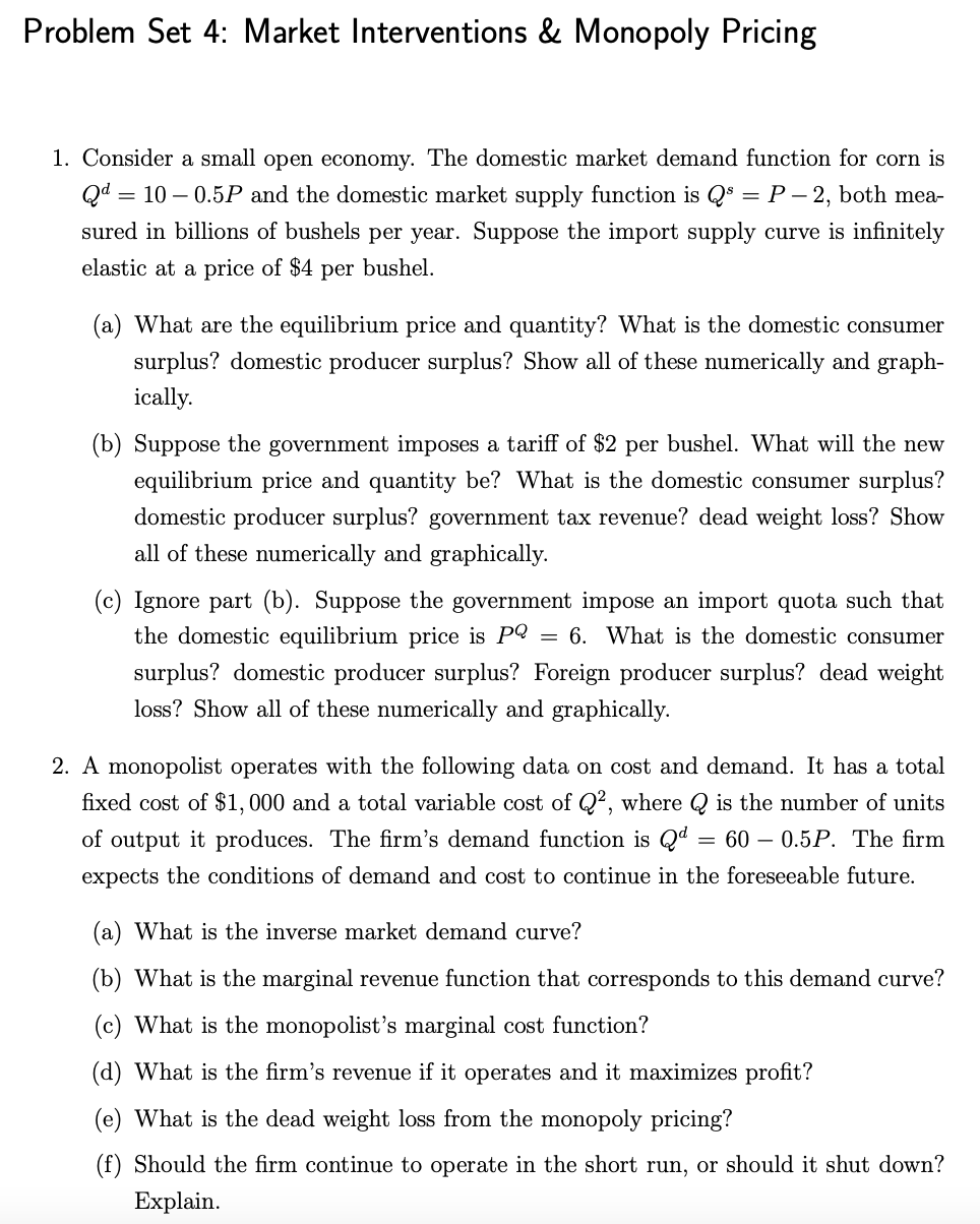 Problem Set 4: Market Interventions & Monopoly Pricing 1. Cons...