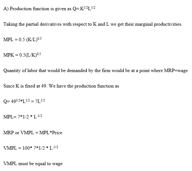 1. LABOR DEMAND, PART 1 Suppose output, Q. is produced by labor,...