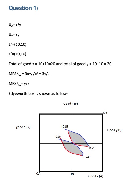 1. Assume utility is described for two individuals as: = U = XY....
