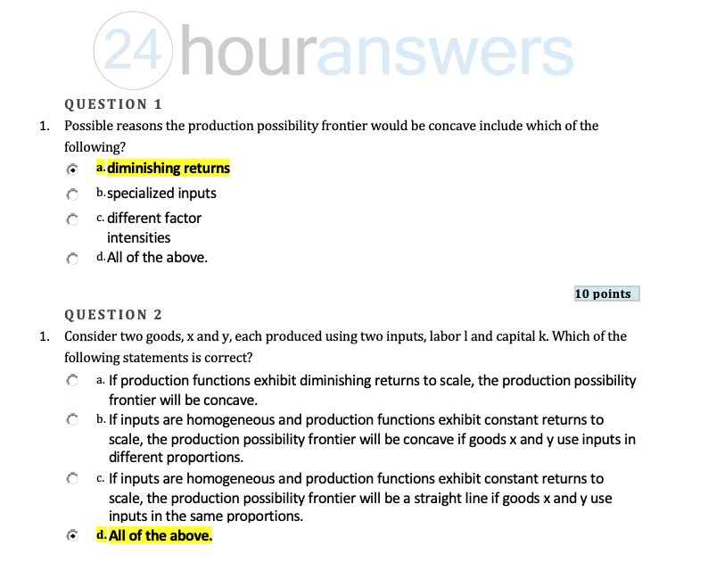 QUESTION 1 1. Possible reasons the production possibility frontier...