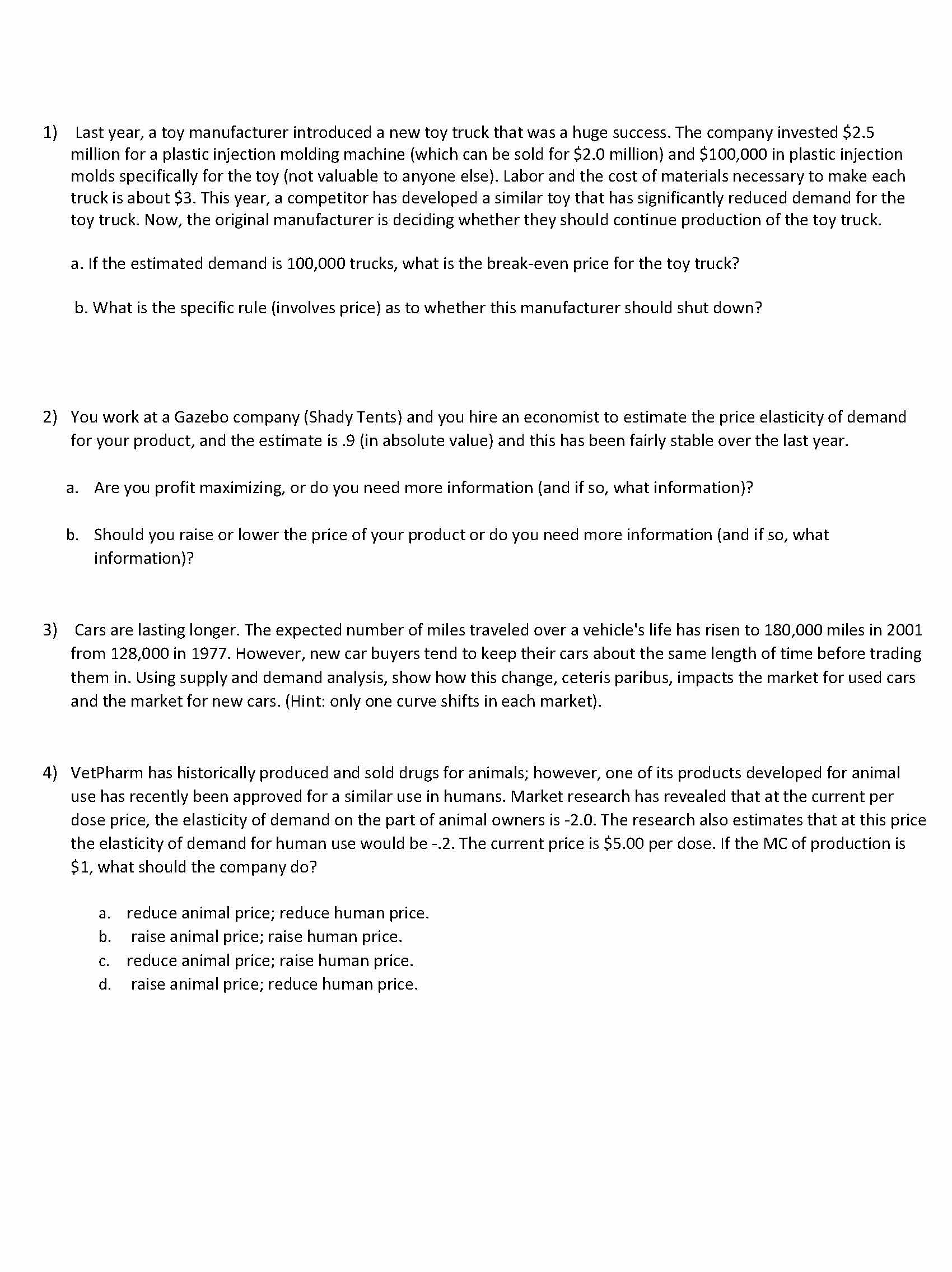 1) Last year, a toy manufacturer introduced a new toy truck that w...