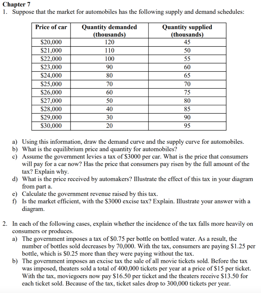 Chapter 7 1. Suppose that the market for automobiles has the follo...