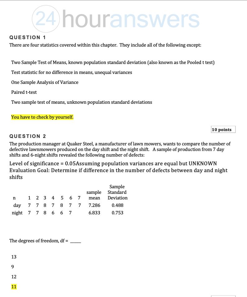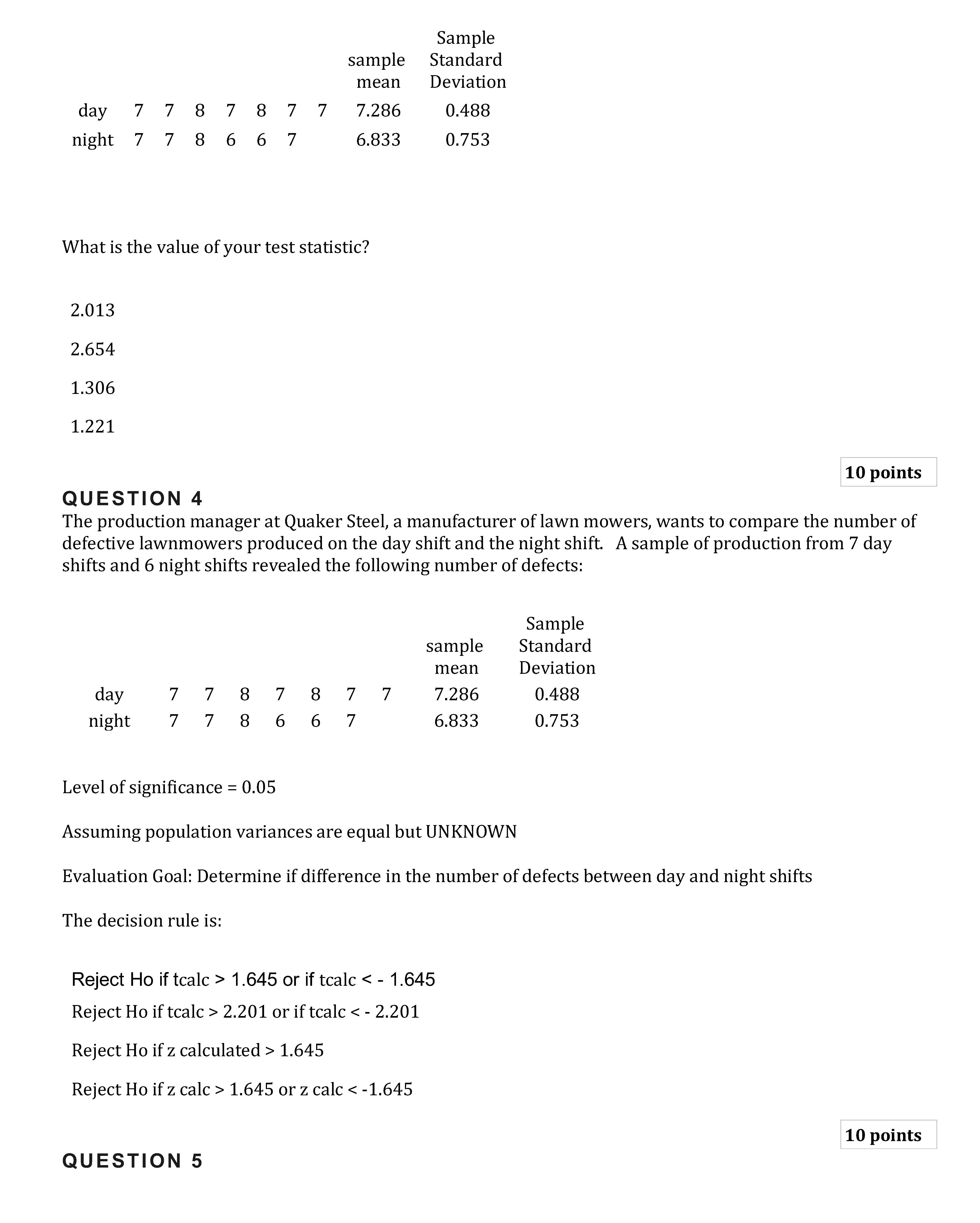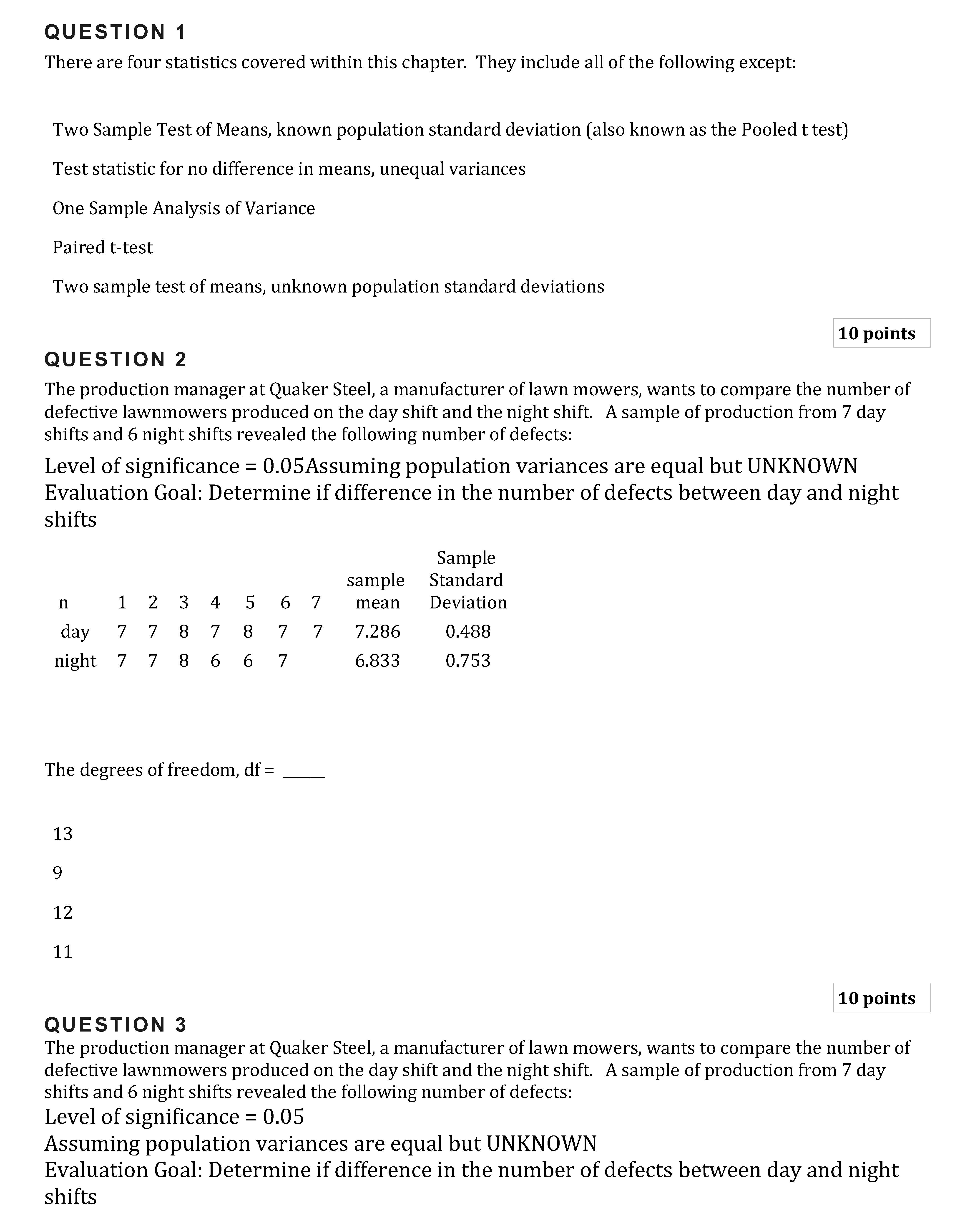 QUESTION 1 There are four statistics covered within this chapter. ...