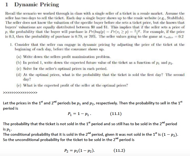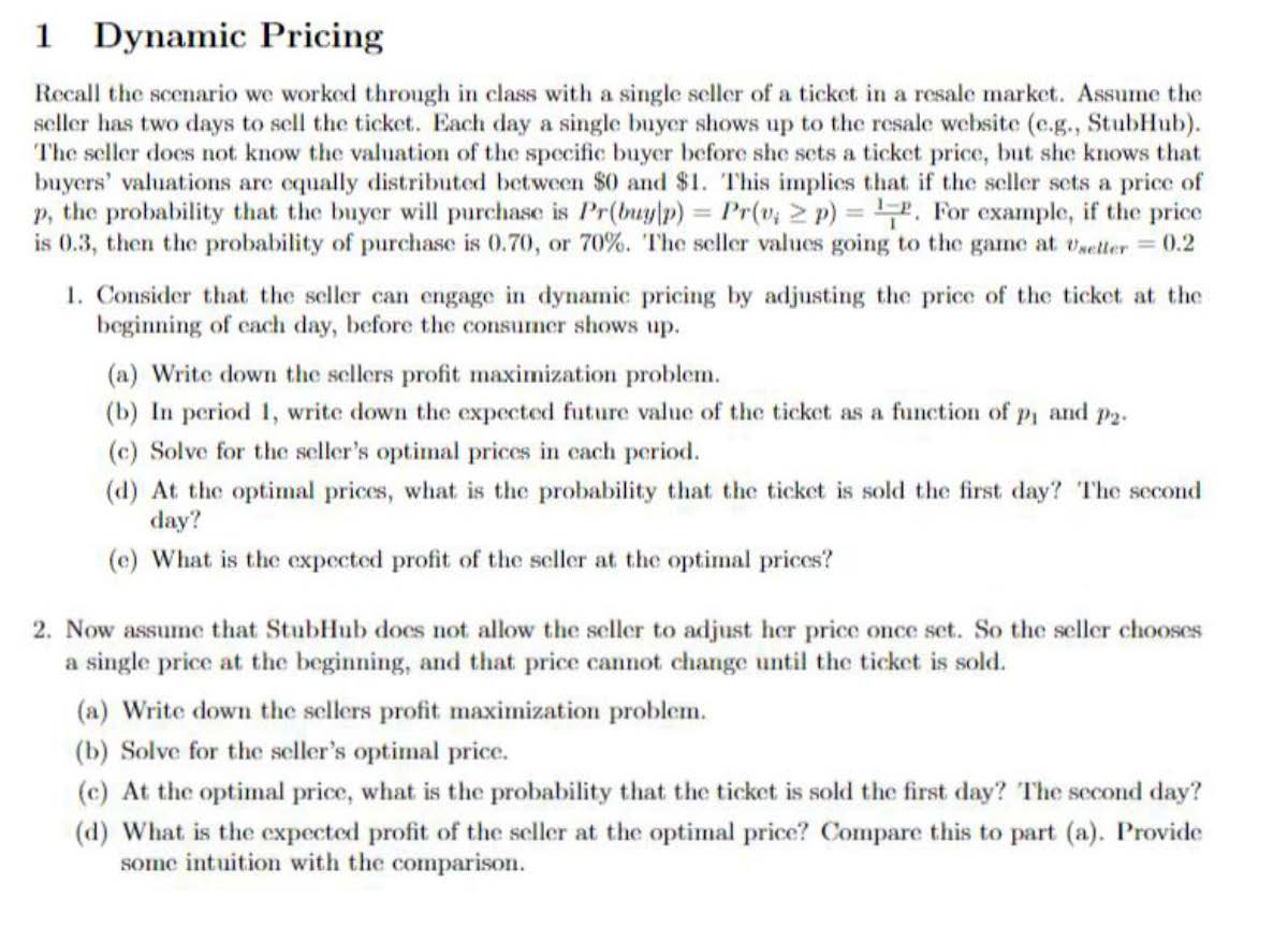 1 Dynamic Pricing Recall the scenario we worked through in class ...