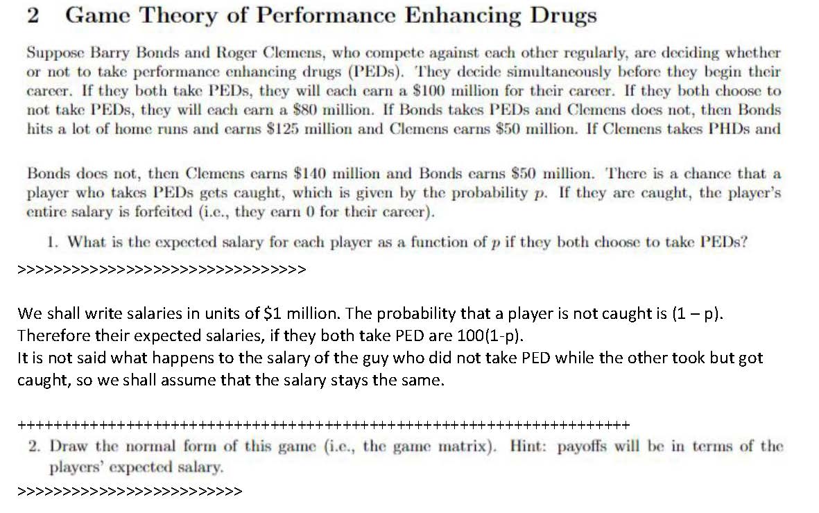 2 Game Theory of Performance Enhancing Drugs Suppose Barry Bonds an...