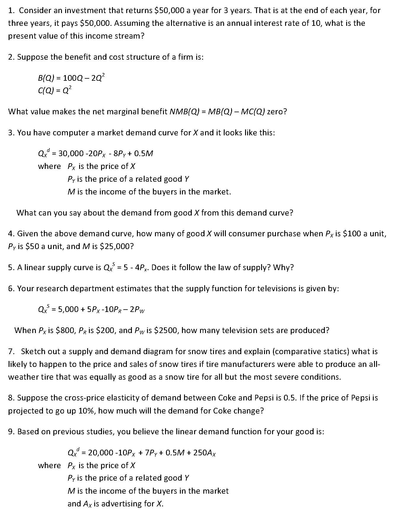 1. Consider an investment that returns $50,000 a year for 3 years....