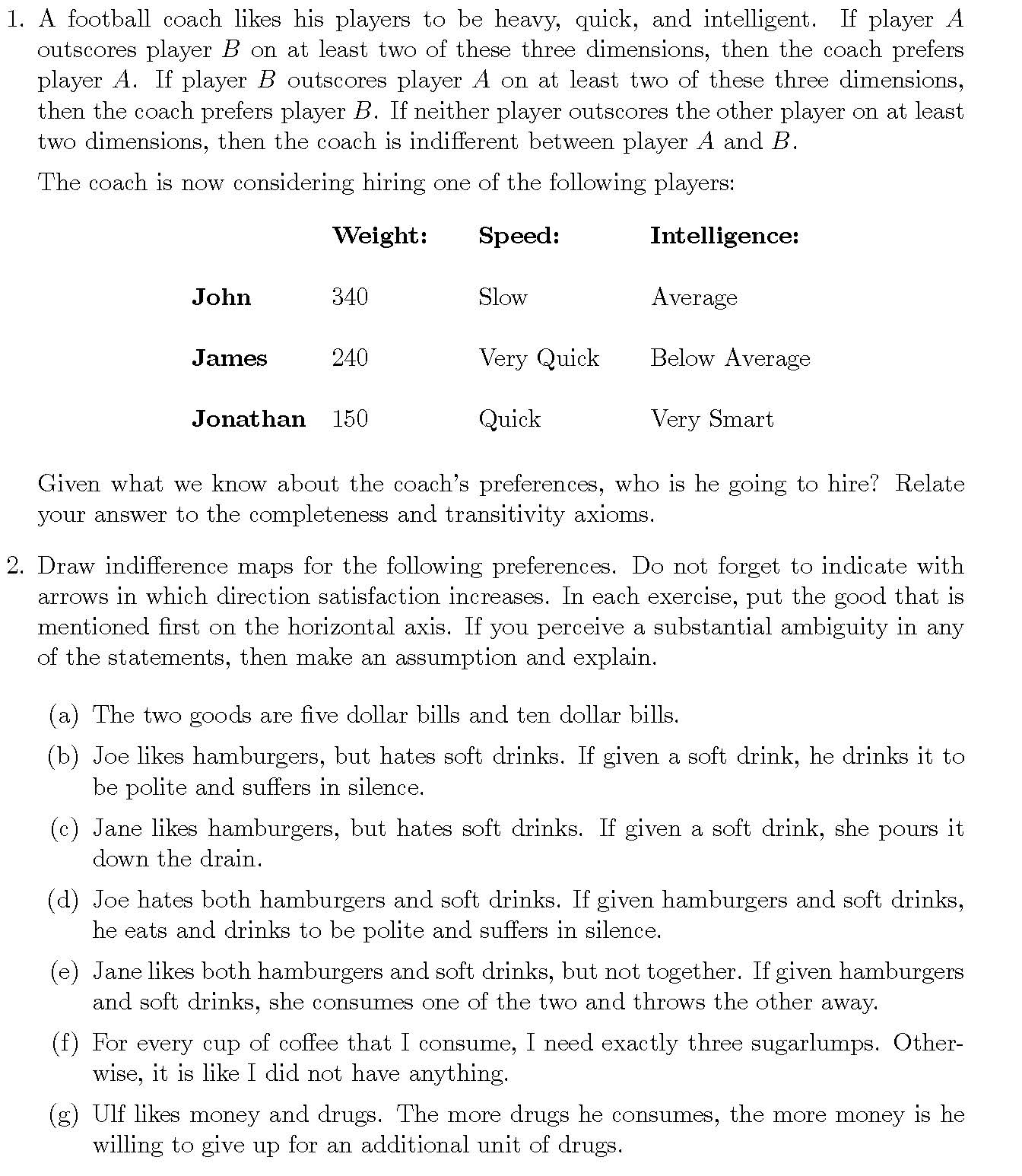 1. A football coach likes his players to be heavy, quick, and intel...