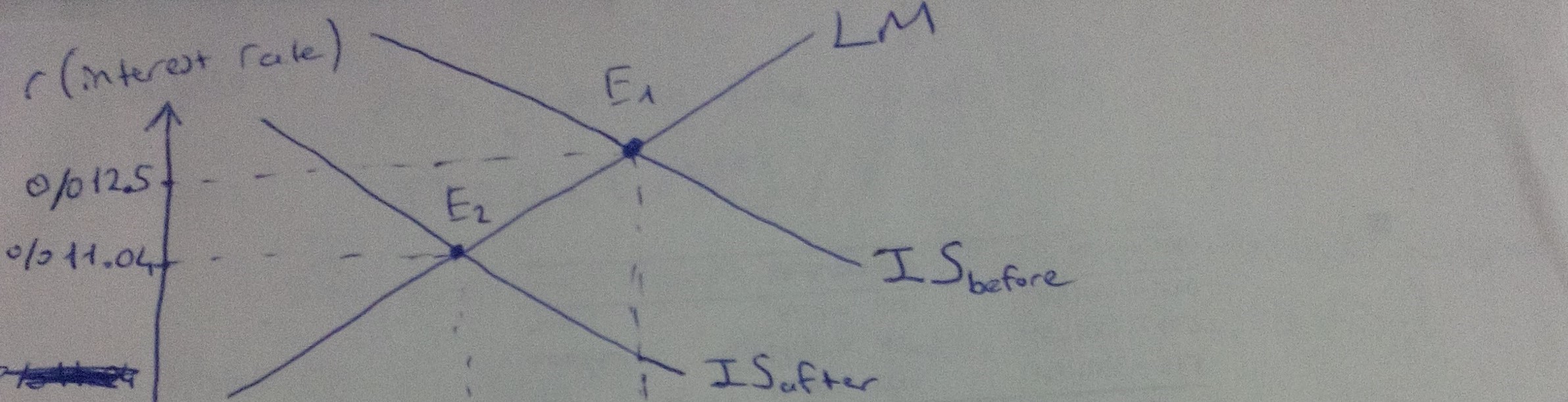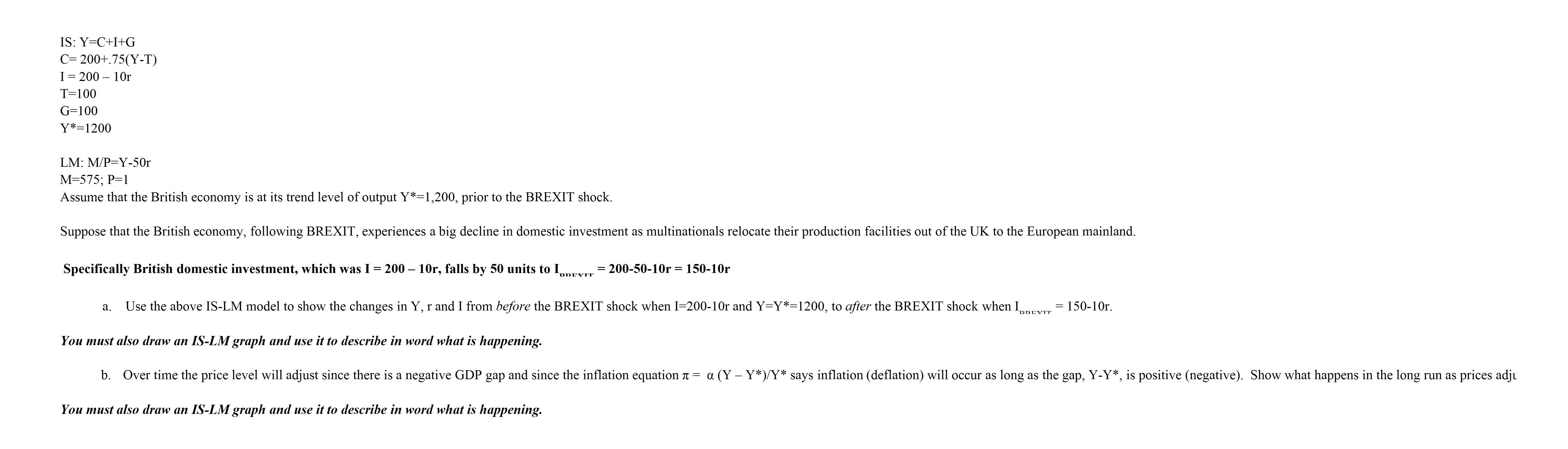 IS: Y=C+I+G C= 200+.75(Y-T) I =200-10r T=100 G=100 Y*=1200 LM...