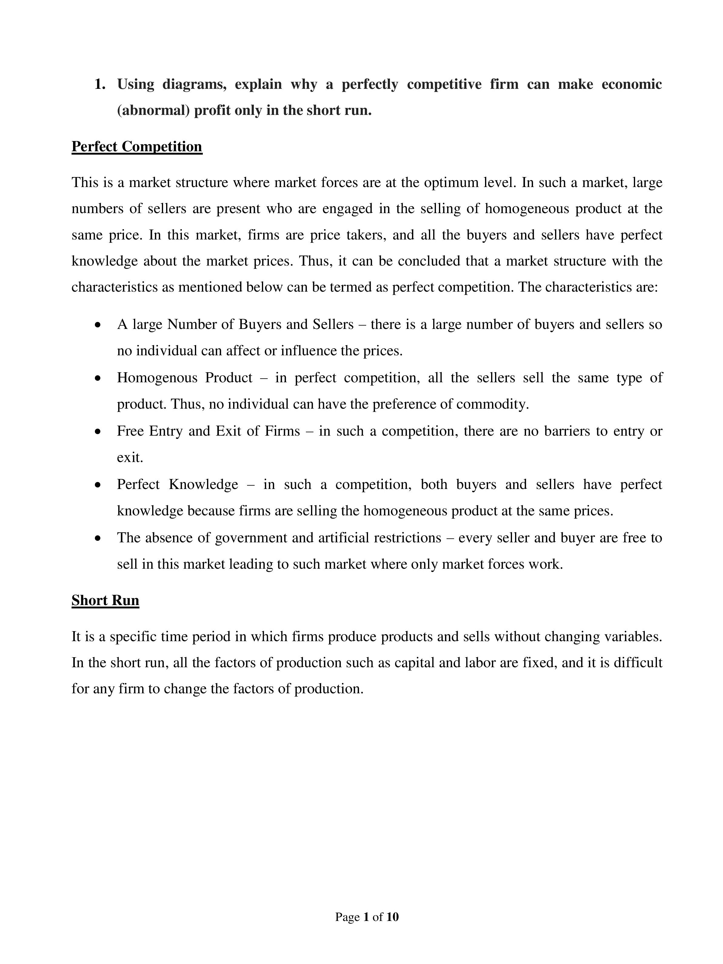 Questions: 1. Using diagrams, explain why a perfectly competitiv...