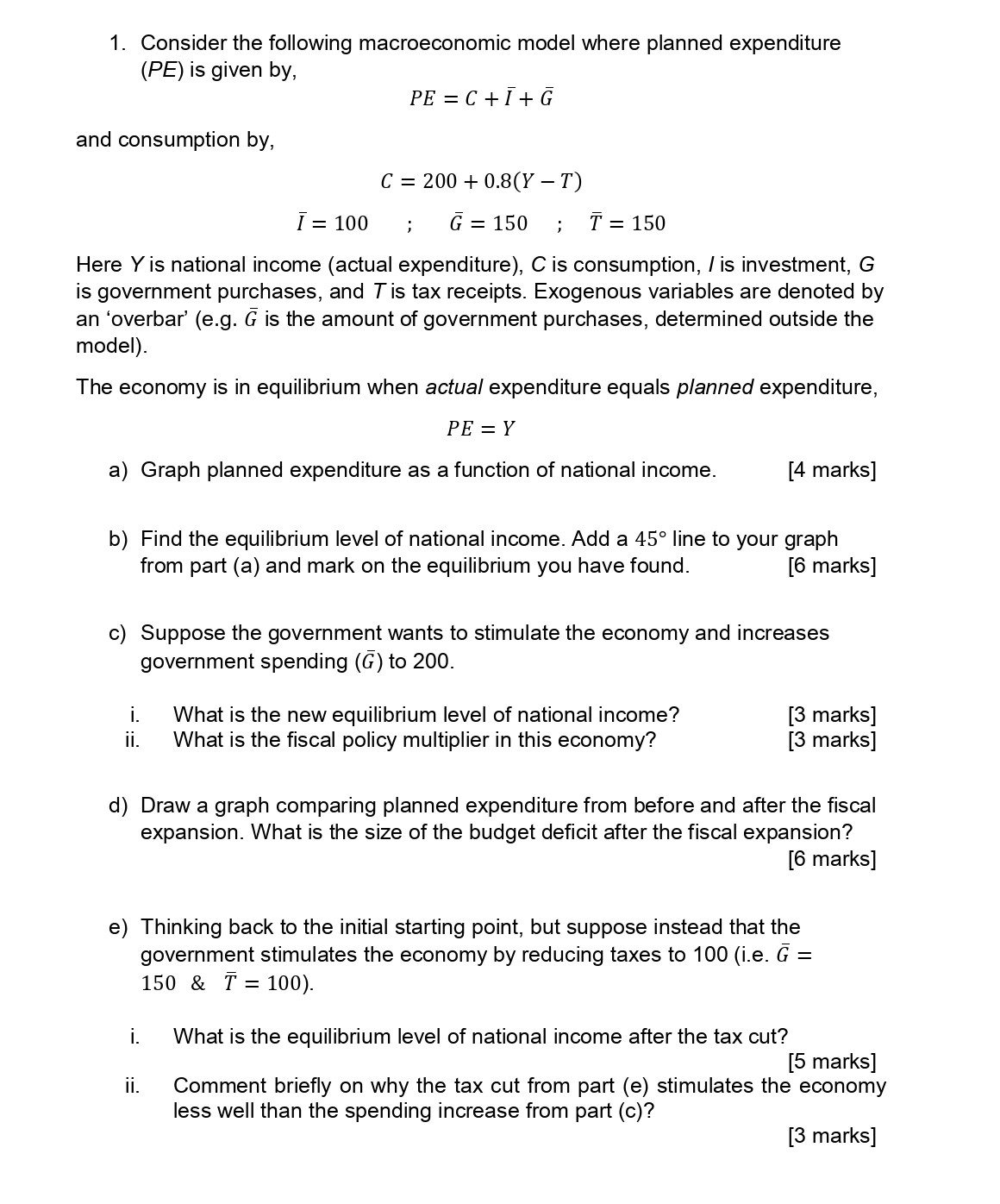 1. Consider the following macroeconomic model where planned expendi...