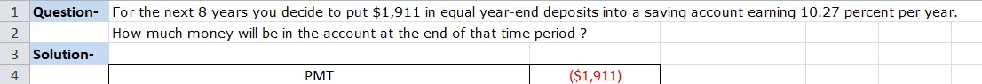 Question: For the next 8 years, you decide to put $1,911 in equal y...