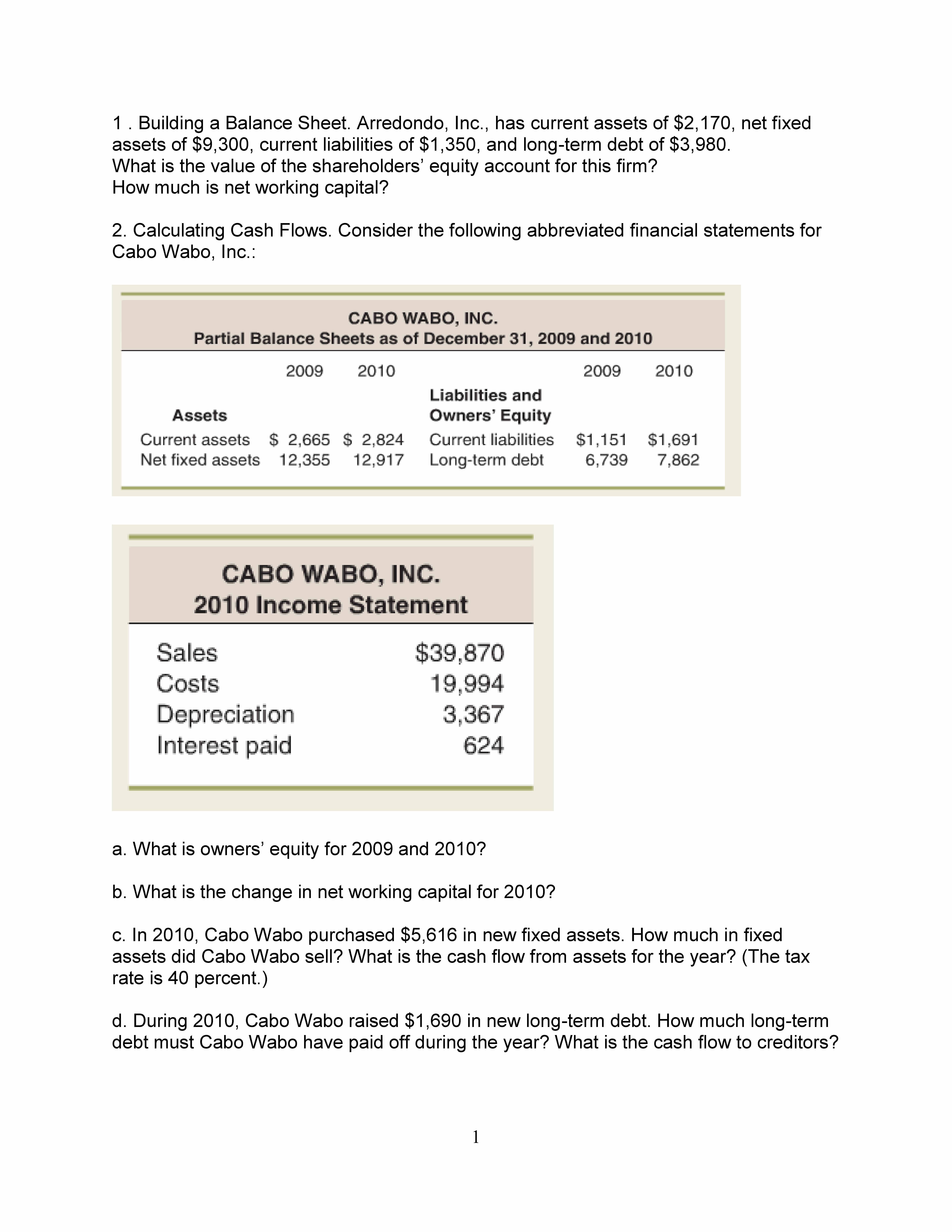 1 . Building a Balance Sheet. Arredondo, Inc., has current assets o...