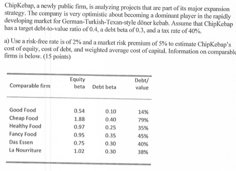 ChipKebap, a newly public firm, is analyzing projects that are part...