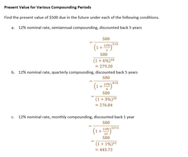 Present Value for Various Compounding Periods Find the present val...