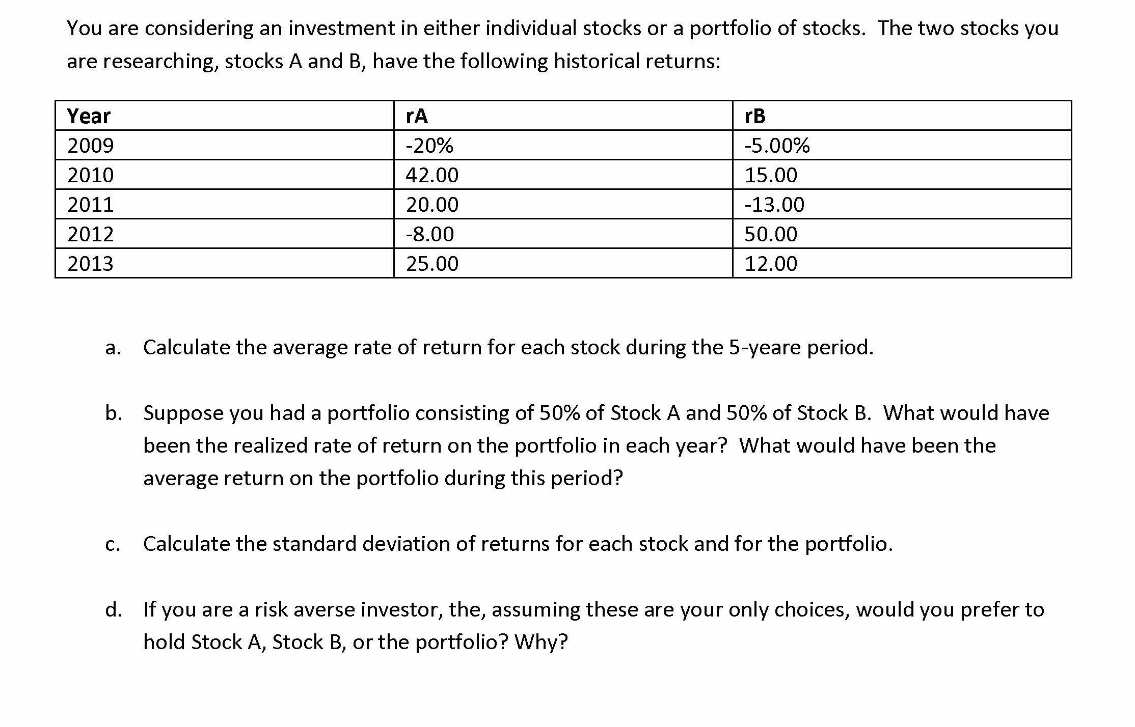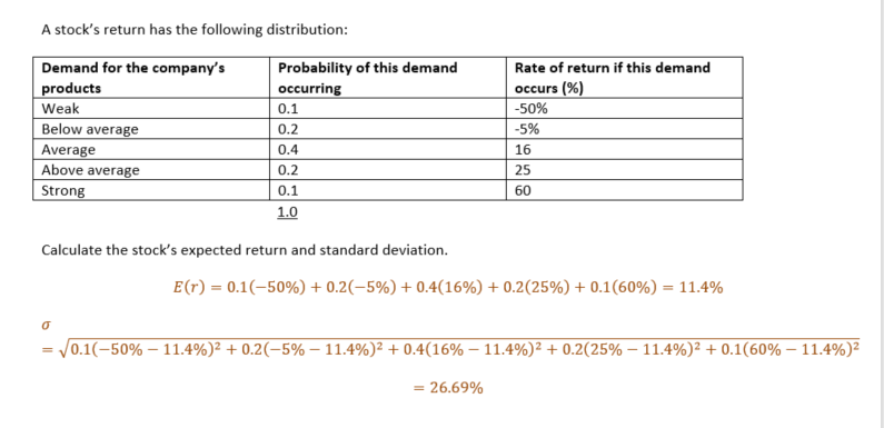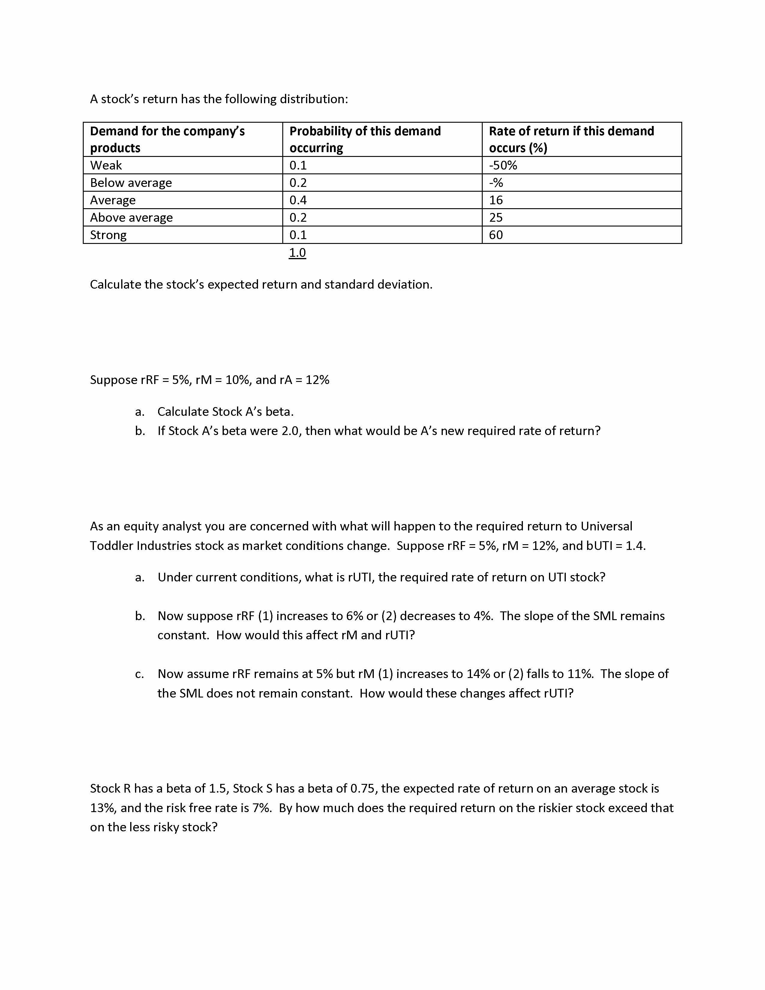 A stock's return has the following distribution: Demand for the co...