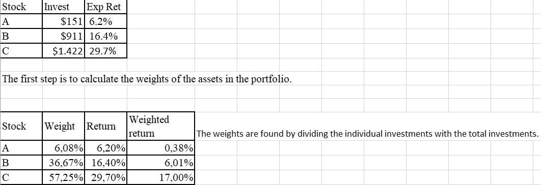 QUESTION 1 Calculate the expected returns of your portfolio Stoc...