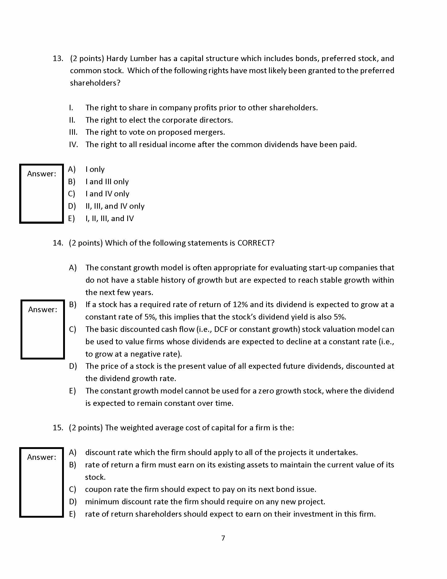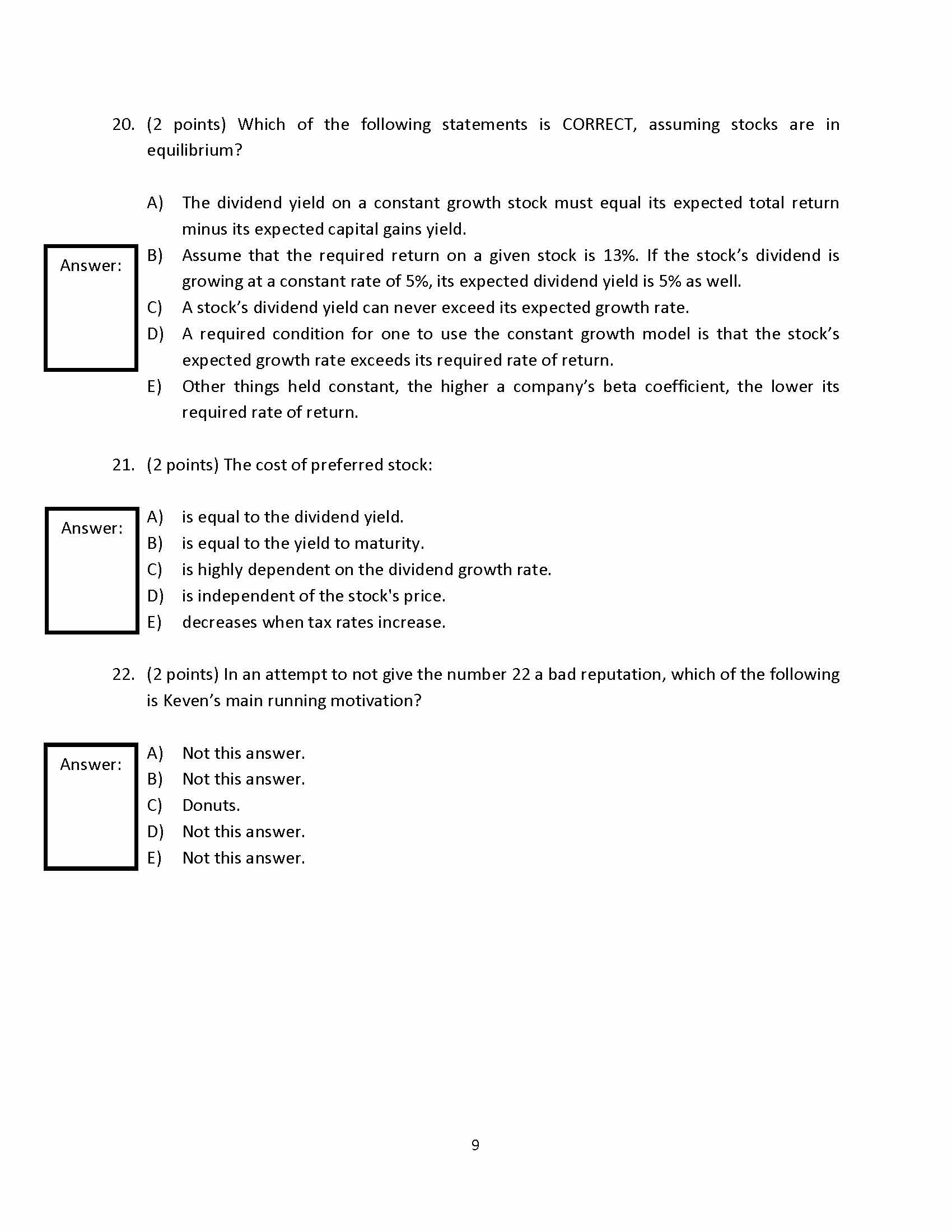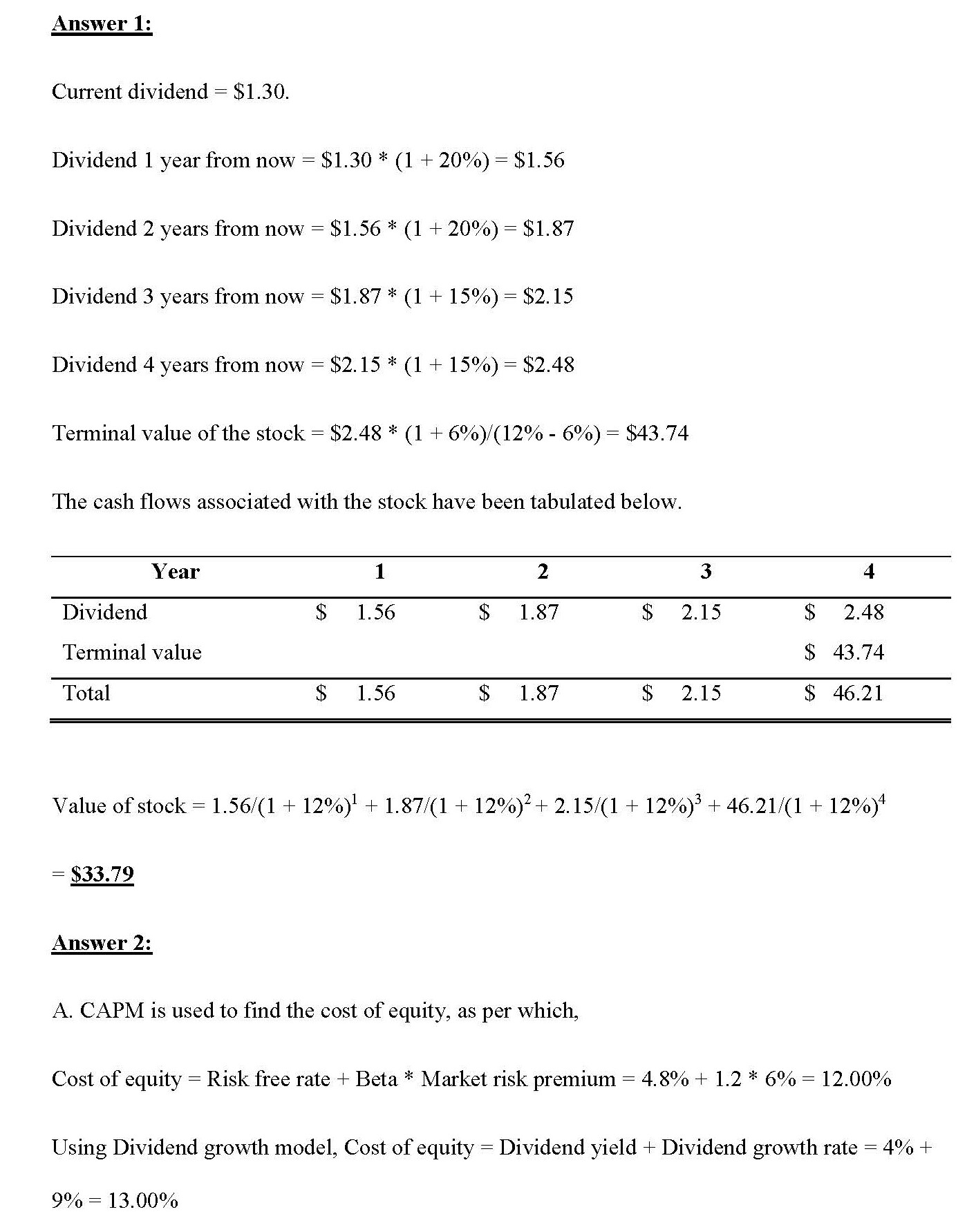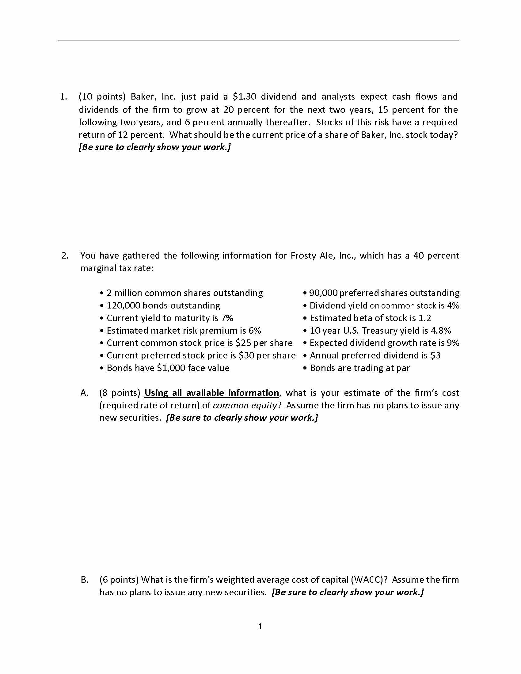 1. (10 points) Baker, Inc. just paid a $1.30 dividend and analysts ...