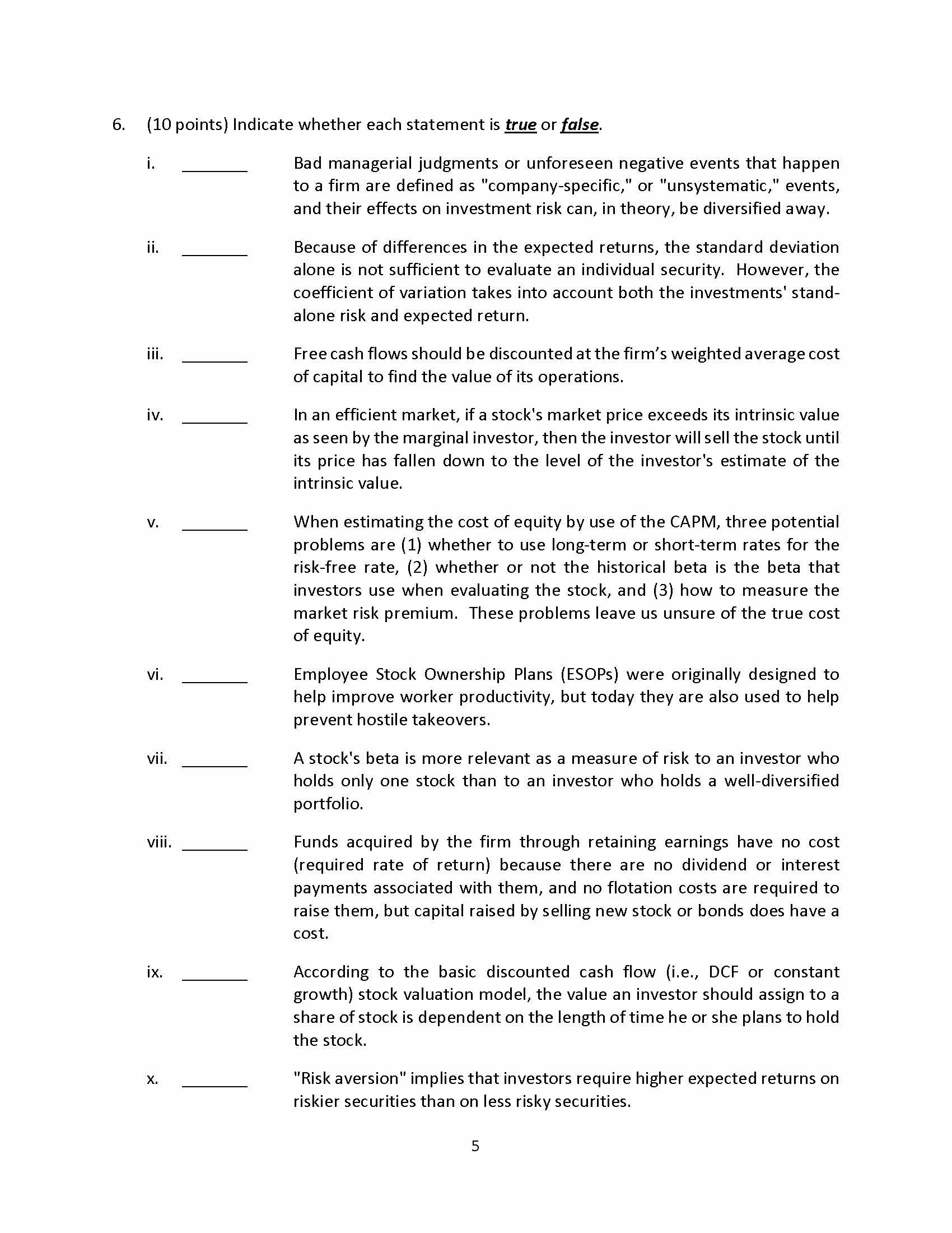 1. (10 points) Baker, Inc. just paid a $1.30 dividend and analysts...