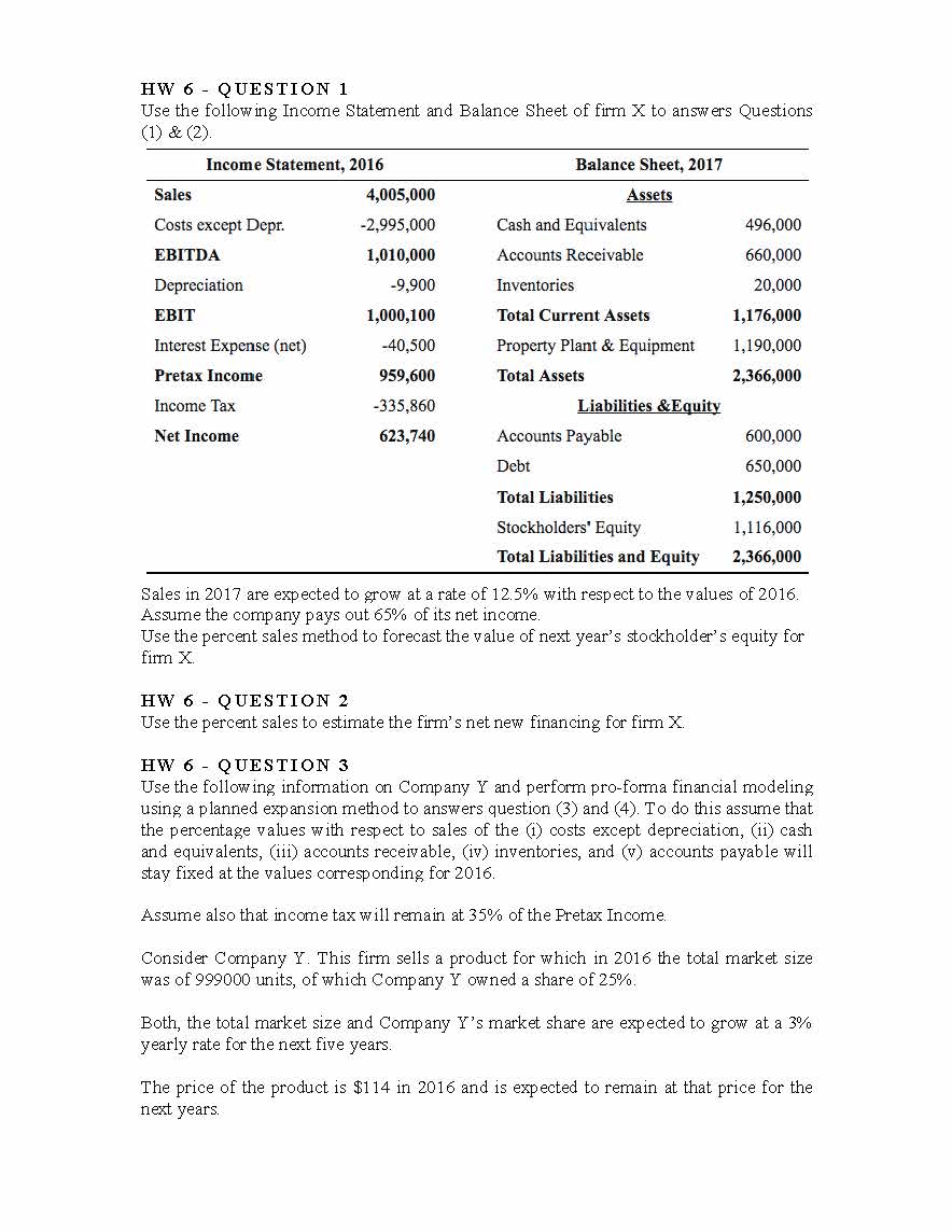 HW 6 - QUESTION 1 Use the following Income Statement and Balance S...