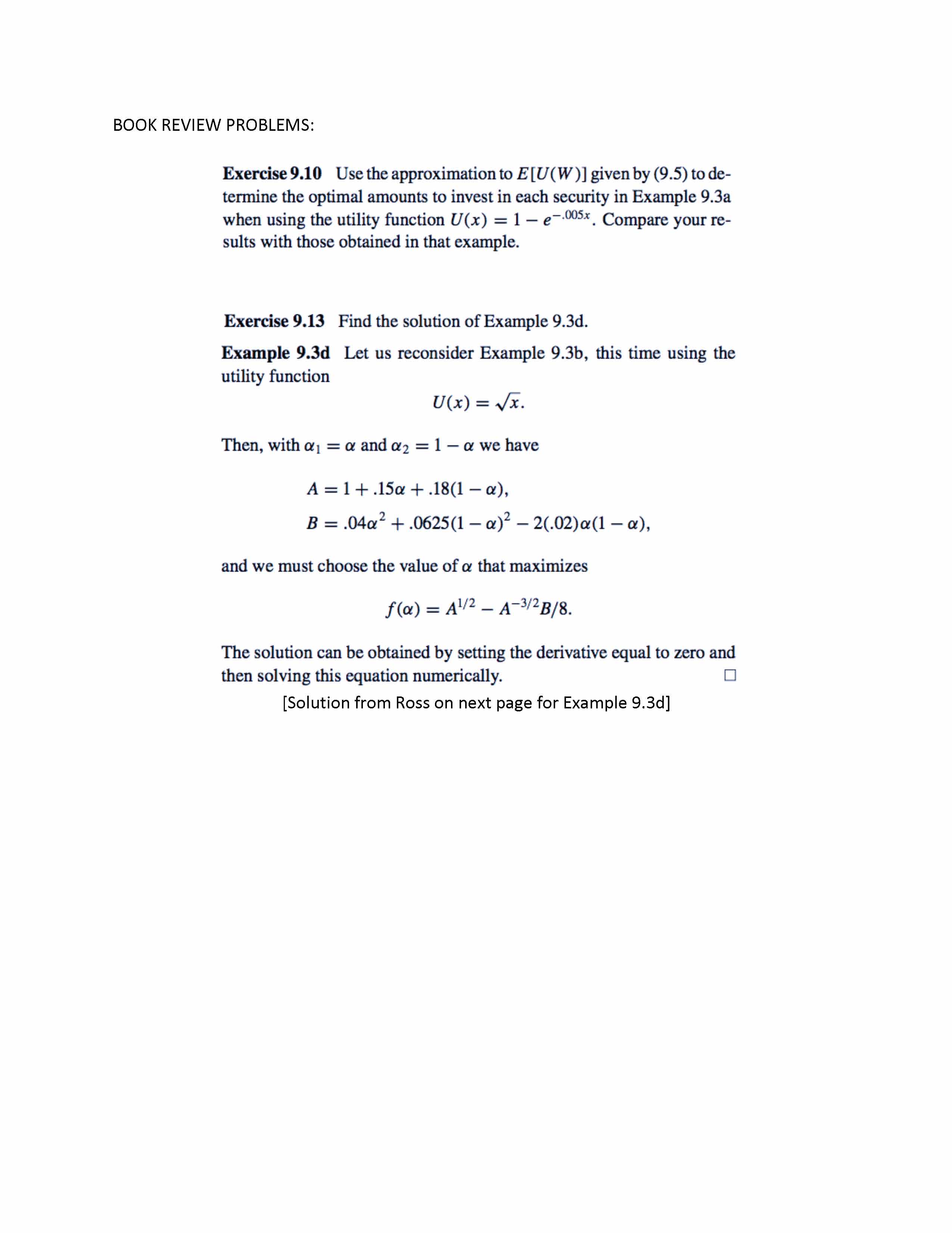 BOOK REVIEW PROBLEMS: [Solution from Ross on next page for Example...