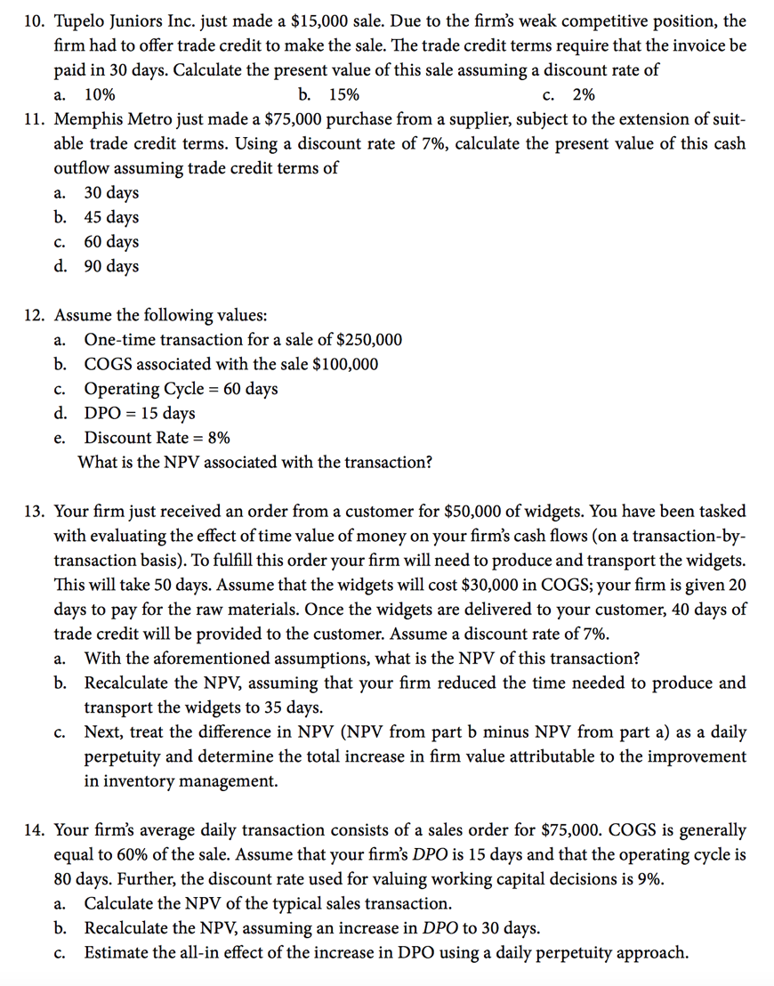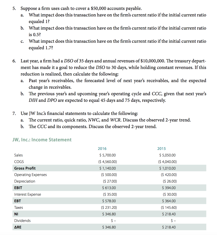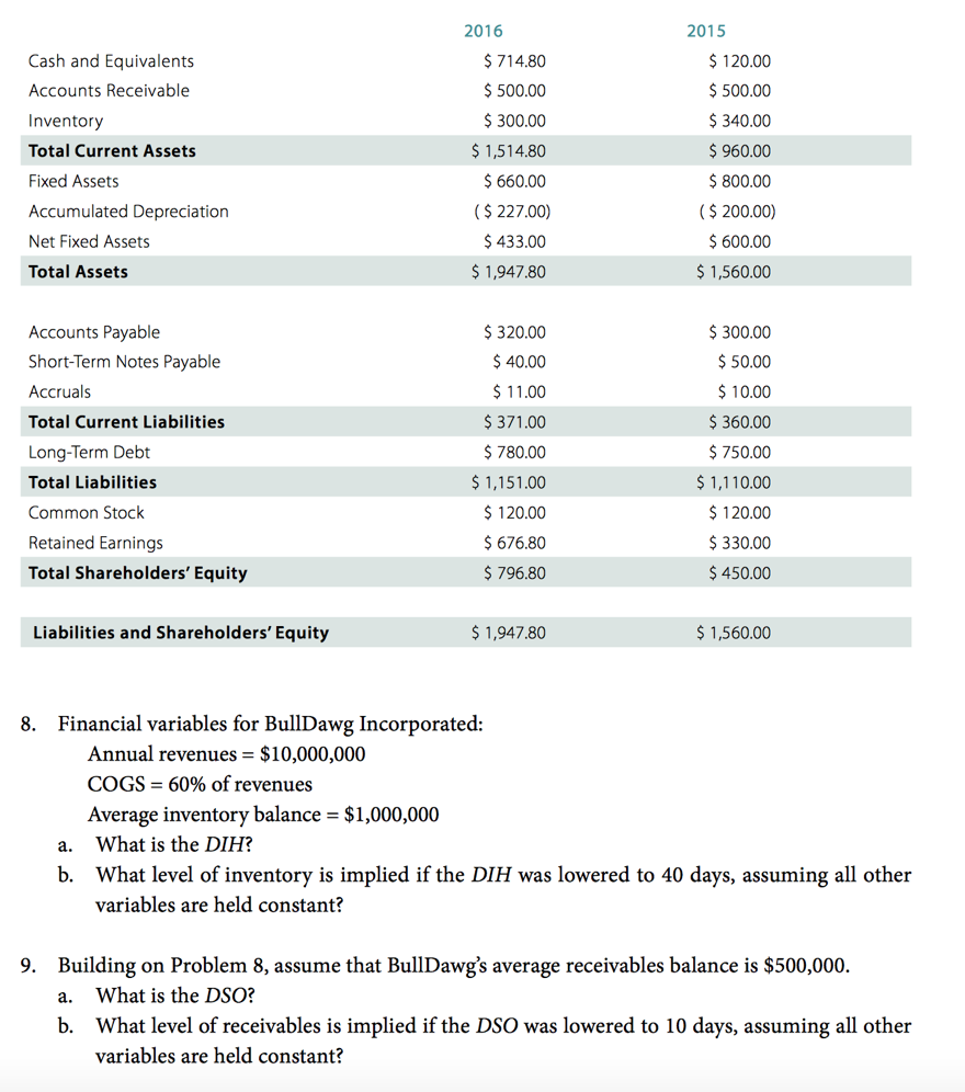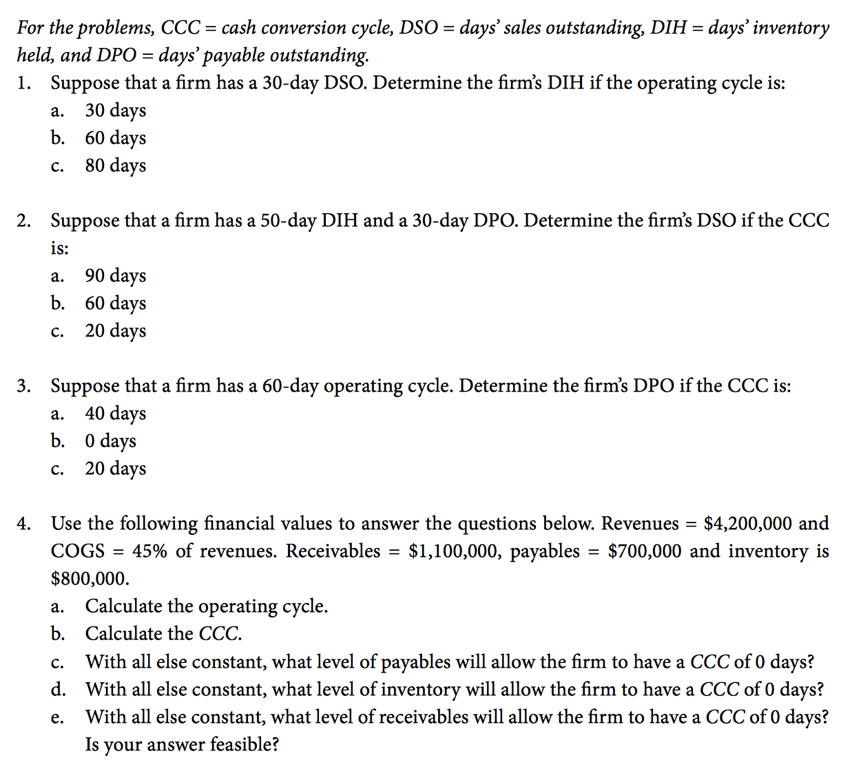 For the problems, CCC = cash conversion cycle, DSO = days' sales ou...