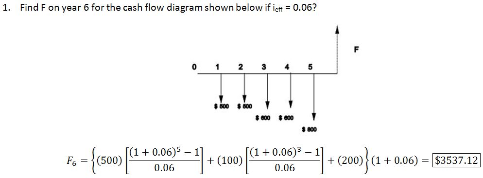 Homework Problems 1. Find F on year 6 for the cash flow diagram sh...