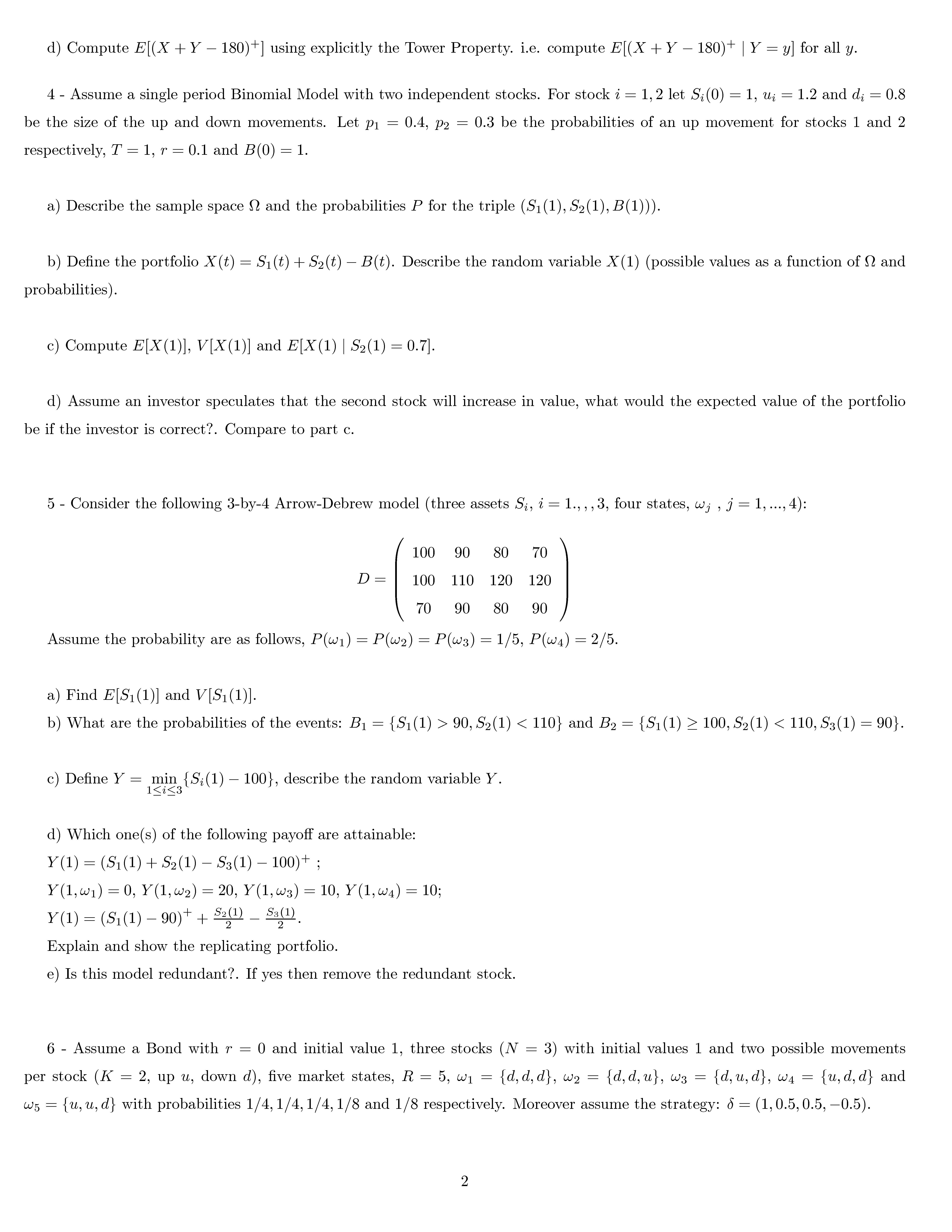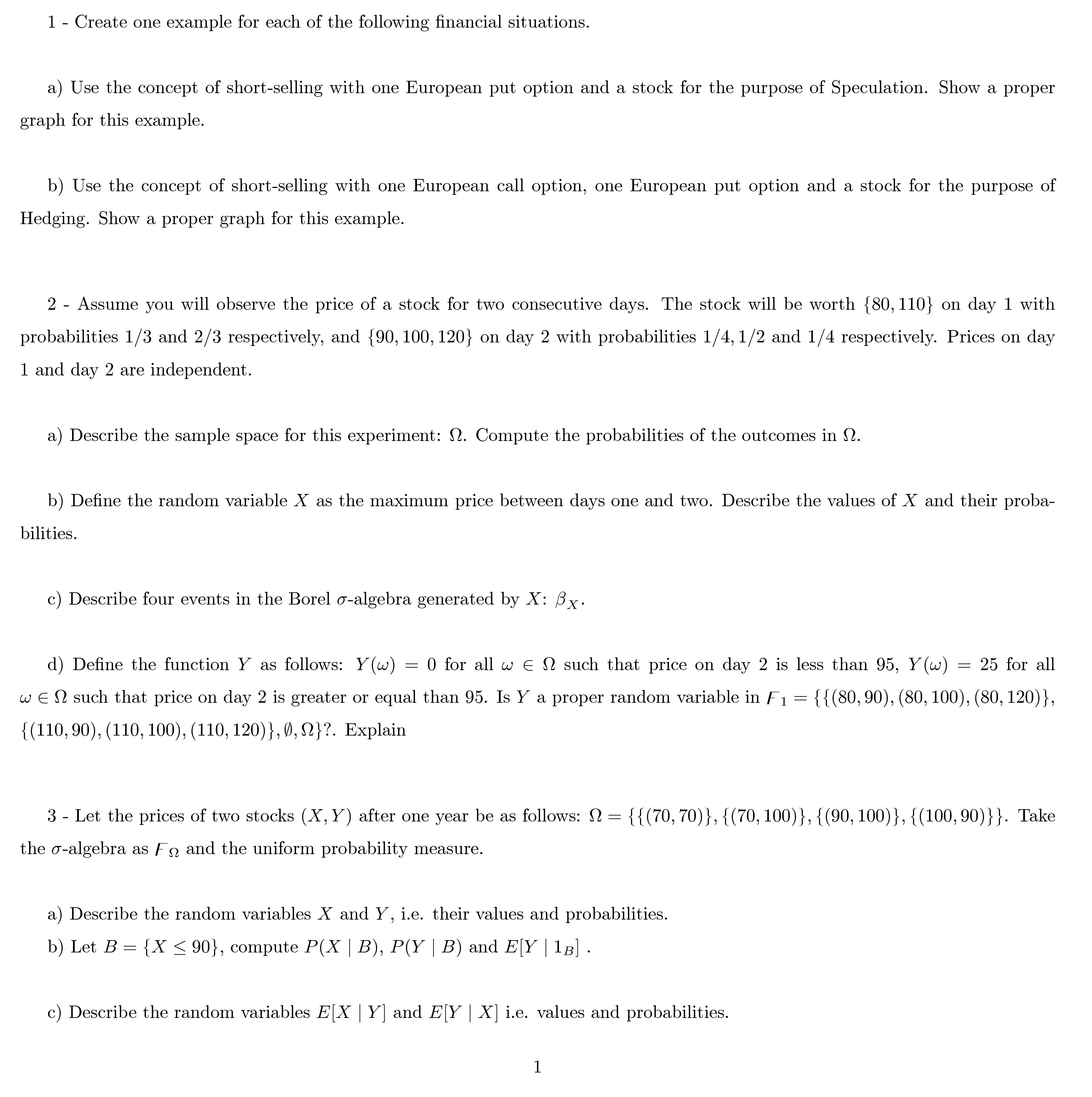 1- Create one example for each of the following financial situation...