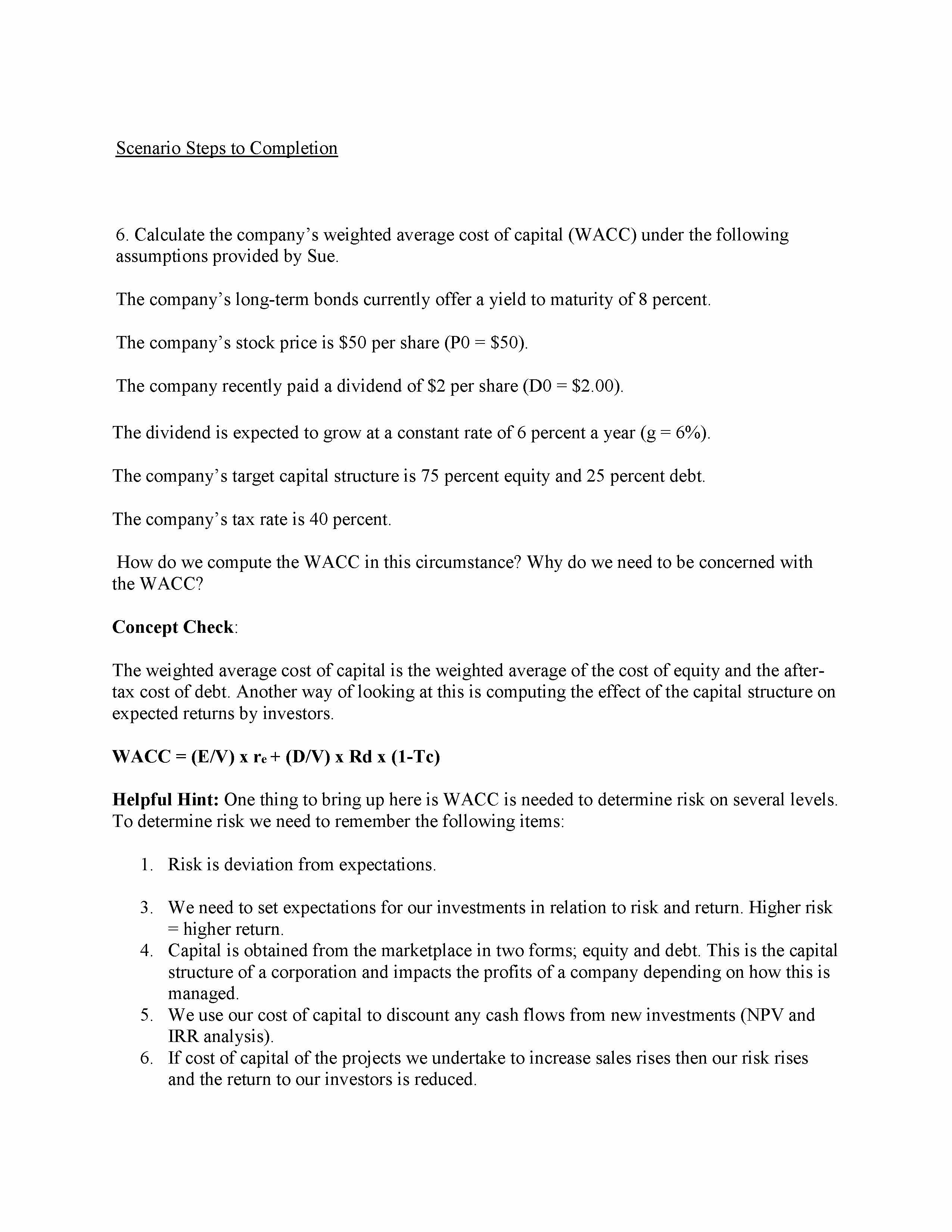 Scenario Steps to Completion 6. Calculate the company' weighted av...